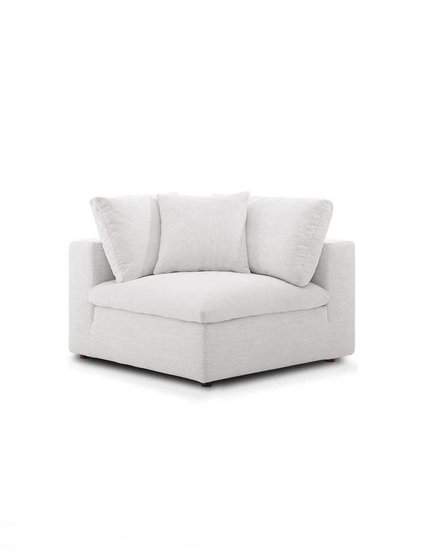 A haven for cozy relaxation, Commix features plush comfort, clean-lined design, and spacious profile, that makes an attractive statement in the modern home. Upholstered in soft polyester fabric, this contemporary corner comes with solid wood construction and cotton and down cushions for a luxurious sink-in feel. Commix comes with generously padded down feather and cotton cushions, and padded foam bases, making this sectional sofa collection perfect for the living room, family room, or game room. Made for sprawling out or curling up, Commix beckons you and guests to sit and stay a while. Includes plastic foot glides. Corner piece includes two back pillows and a throw pillow.