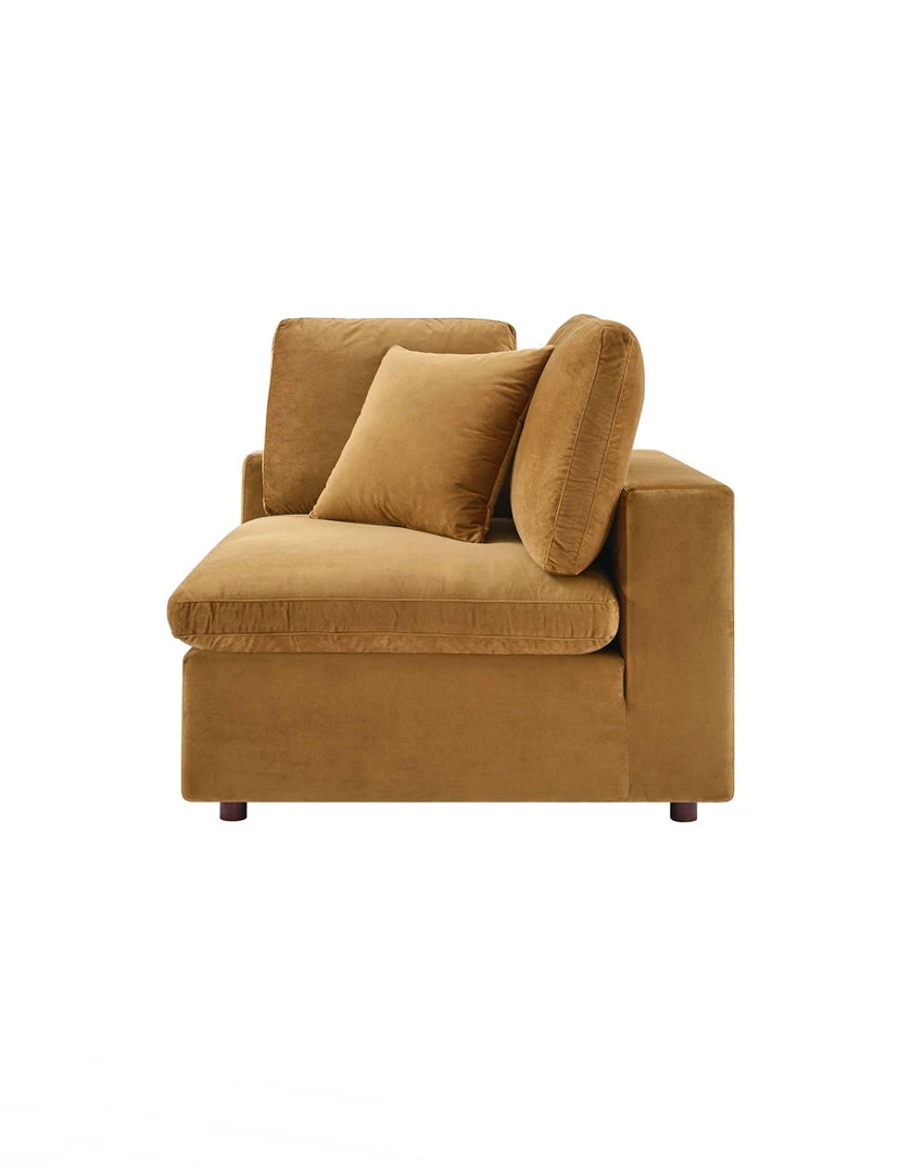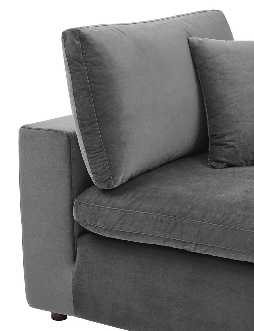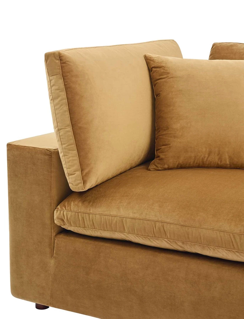 A haven for cozy relaxation, Cody features plush comfort, clean-lined design, and spacious profile, that makes an attractive statement in the modern home. Covered in stain-resistant performance velvet, this upholstered sofa comes with a solid wood construction and foam padded and duck down cushions for a luxurious sink-in feel. Cody features overstuffed down feather cushions that offer a feeling of relaxation and calming comfort while lounging, making it the perfect addition to the living room, family room, or game room. Made for sprawling out or curling up, Cody beckons you and guests to sit and stay a while. Includes plastic foot glides.