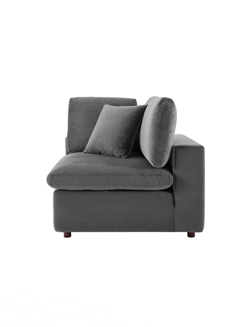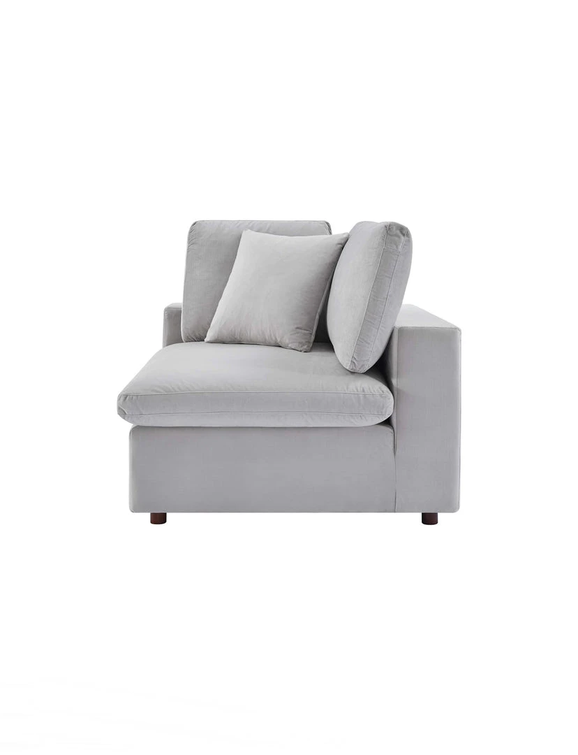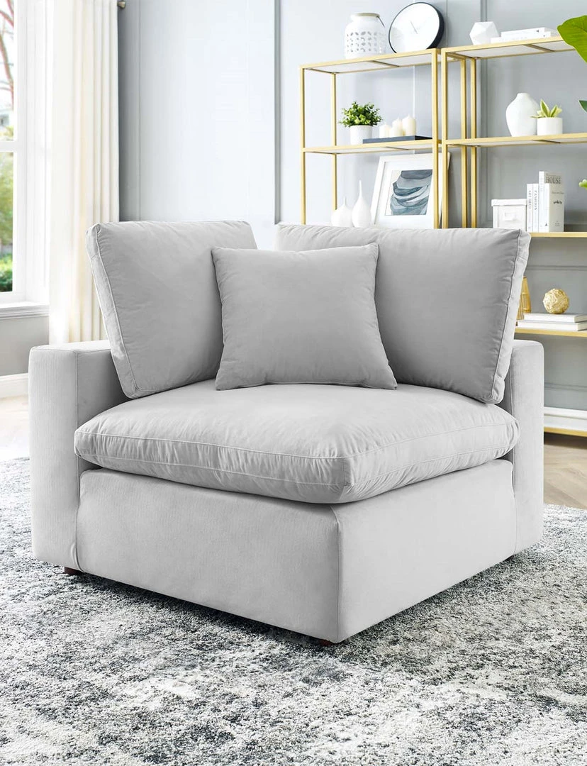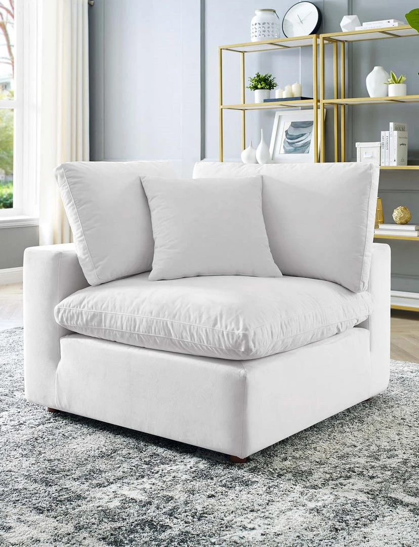 A haven for cozy relaxation, Cody features plush comfort, clean-lined design, and spacious profile, that makes an attractive statement in the modern home. Covered in stain-resistant performance velvet, this upholstered sofa comes with a solid wood construction and foam padded and duck down cushions for a luxurious sink-in feel. Cody features overstuffed down feather cushions that offer a feeling of relaxation and calming comfort while lounging, making it the perfect addition to the living room, family room, or game room. Made for sprawling out or curling up, Cody beckons you and guests to sit and stay a while. Includes plastic foot glides.