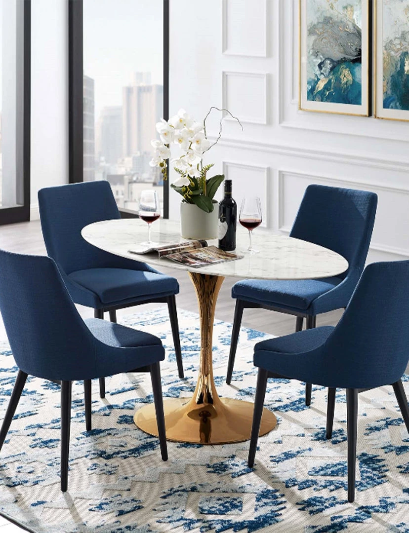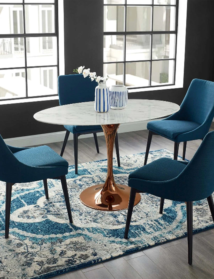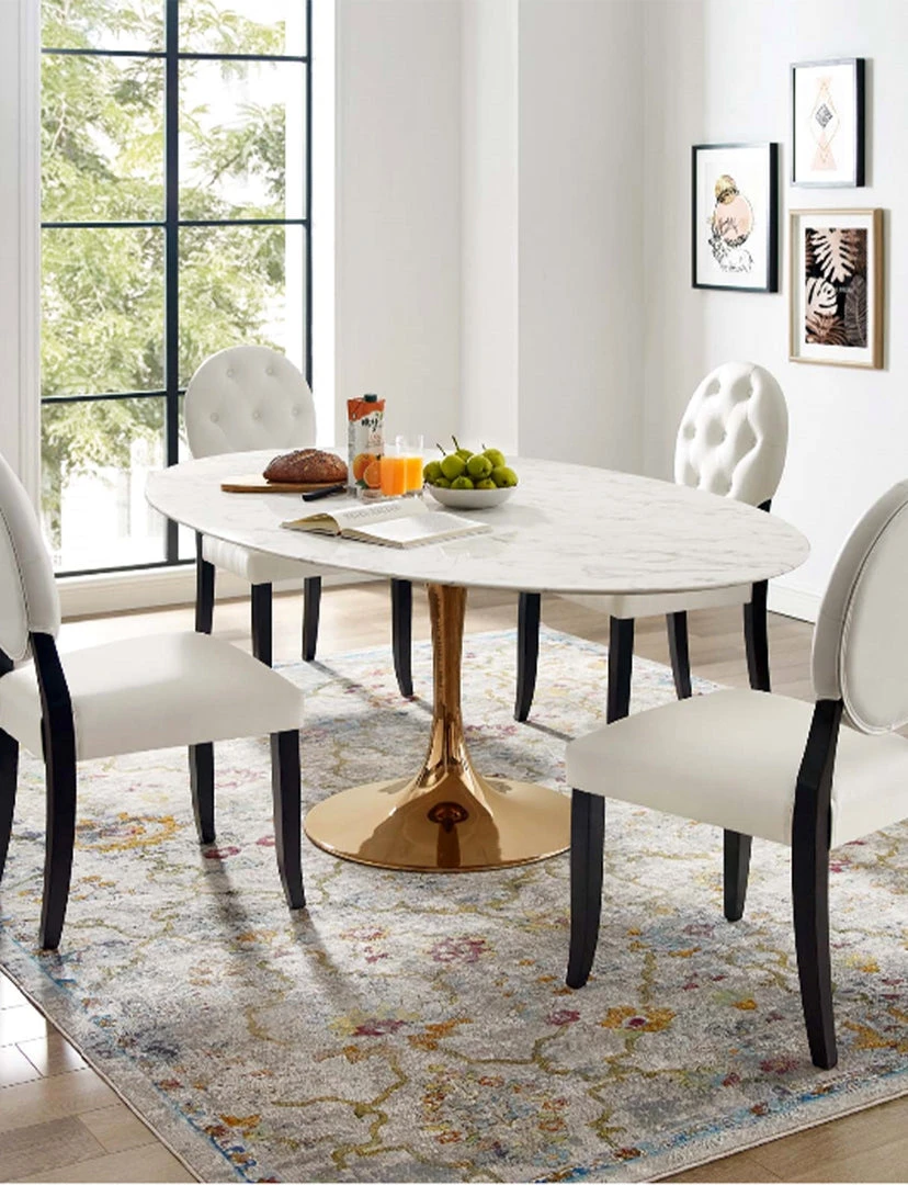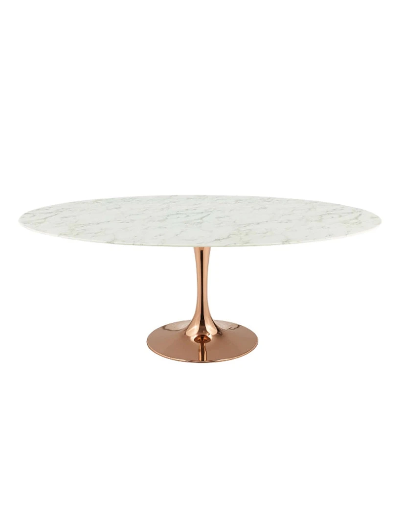 Reflecting a seamless organic shape and timeless form, the Lily Table has become a symbol of modernism for over the past 60 years. Before its release, homes were filled with clunky remnants of an industrial age long gone by. But in order to advance into the new world, homes first had to transition from the traditional square table, into a piece that connoted progress. The base and dimensions are true to the original specifications, while the table’s circular marble top, and tapered metal base, are carefully lacquered with a scratch and chip resistant finish.