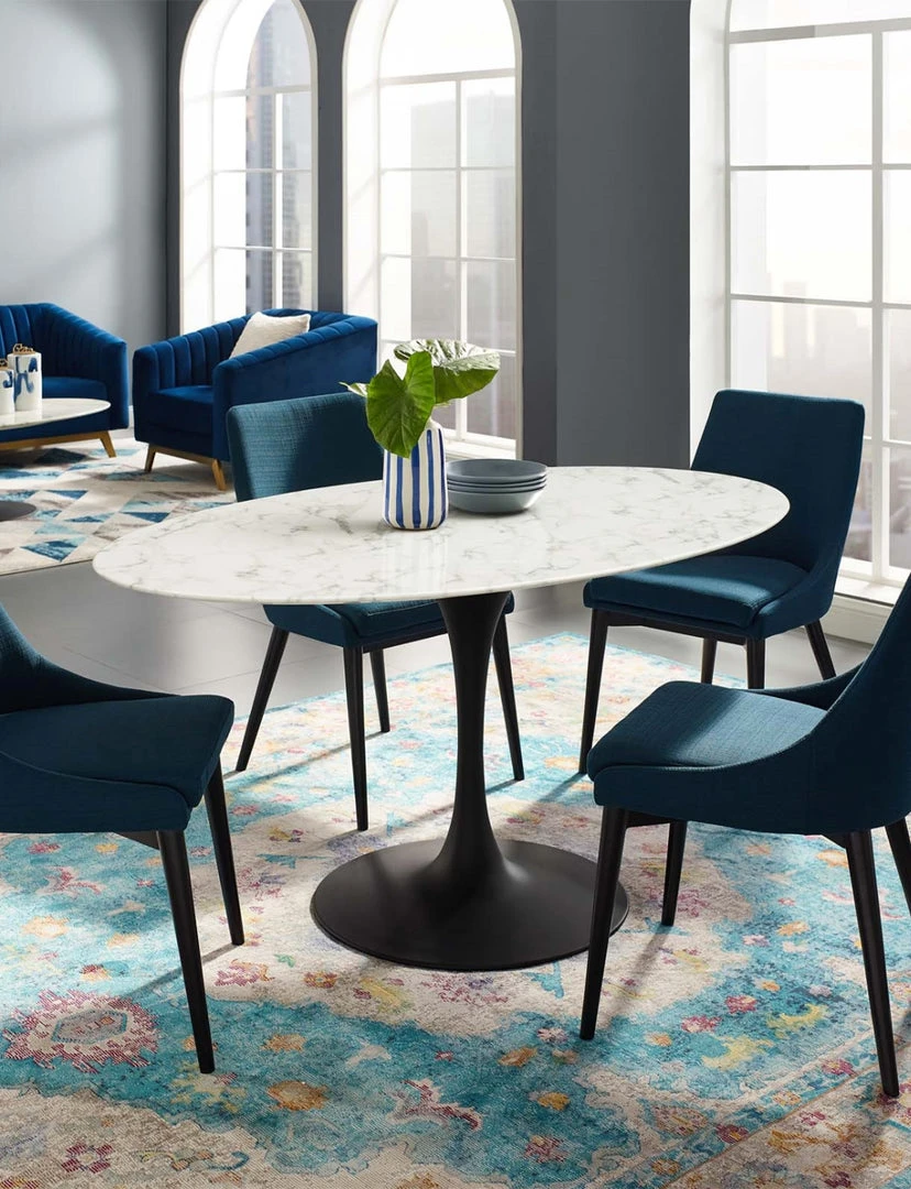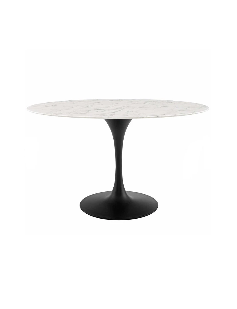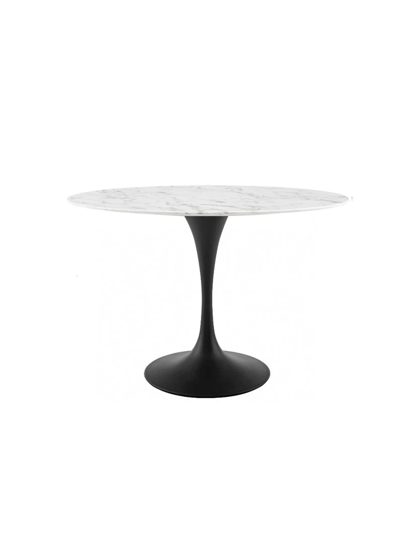 Reflecting a seamless organic shape and timeless form, the Lily Table has become a symbol of modernism for over the past 60 years. Before its release, homes were filled with clunky remnants of an industrial age long gone by. But in order to advance into the new world, homes first had to transition from the traditional square table, into a piece that connoted progress. The base and dimensions are true to the original specifications, while the table’s circular marble top, and tapered metal base, are carefully lacquered with a scratch and chip resistant finish.