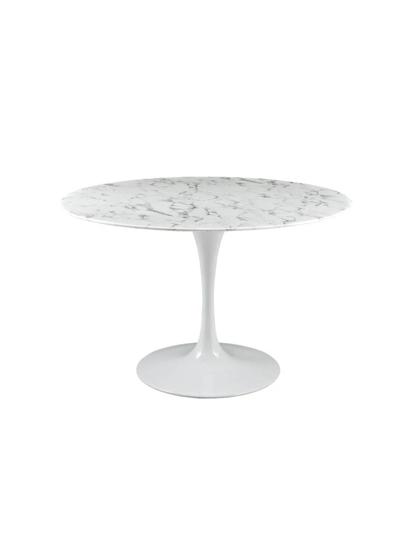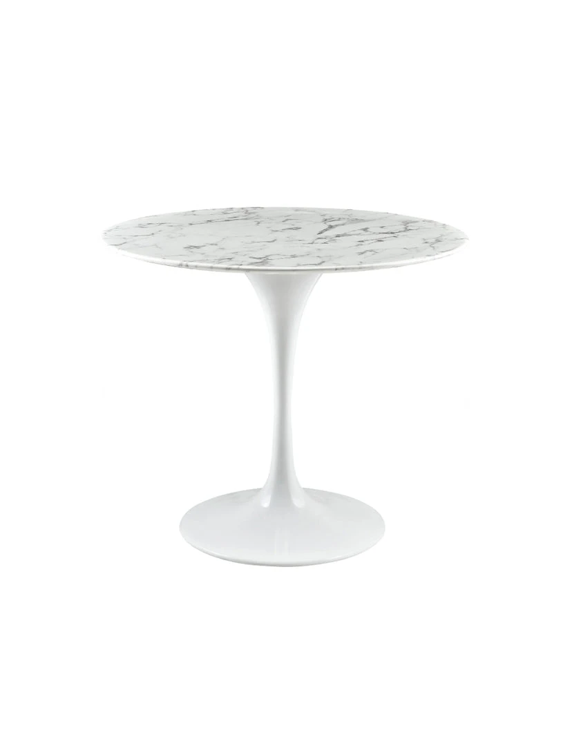 Reflecting a seamless organic shape and timeless form, the Lily Table has become a symbol of modernism for over the past 60 years. Before its release, homes were filled with clunky remnants of an industrial age long gone by. But in order to advance into the new world, homes first had to transition from the traditional square table, into a piece that connoted progress. The base and dimensions are true to the original specifications, while the table’s circular marble top, and tapered metal base, are carefully lacquered with a scratch and chip resistant finish.