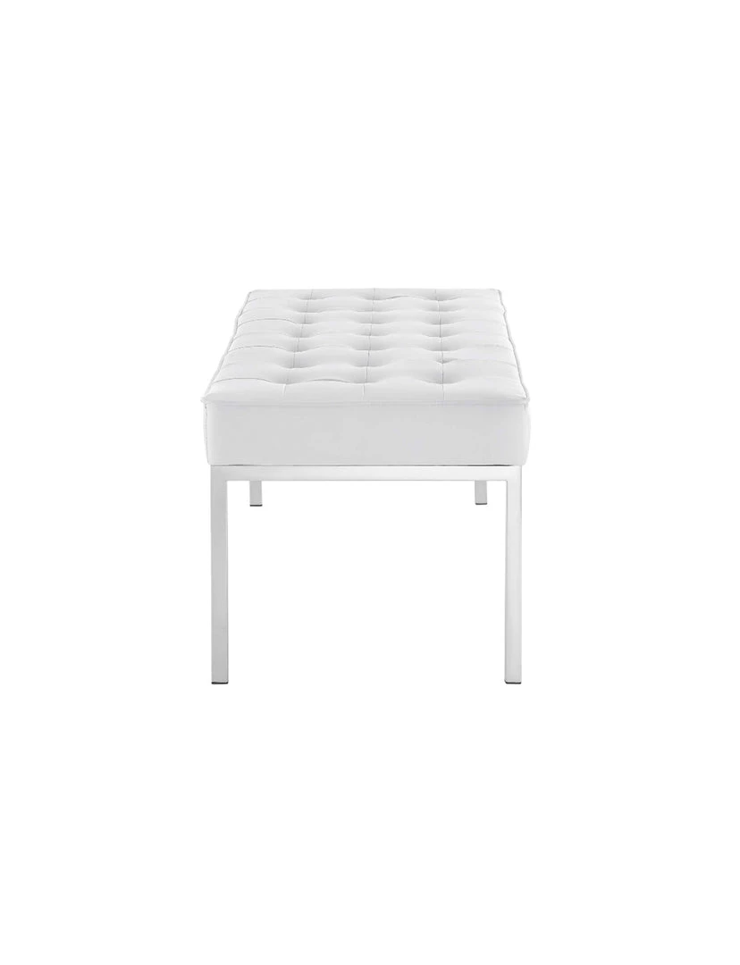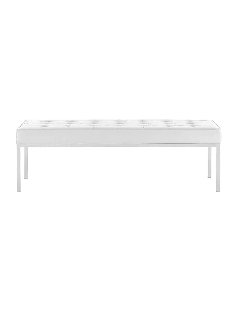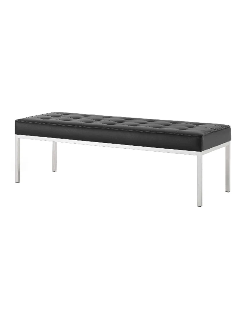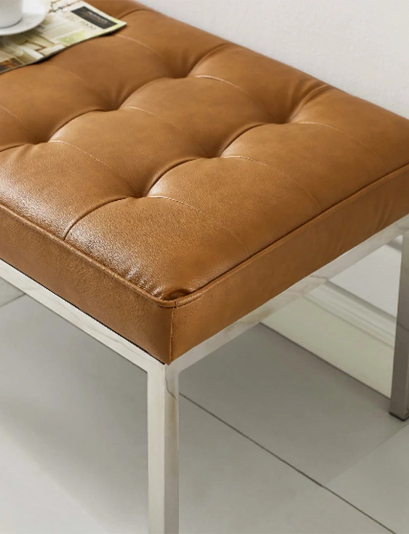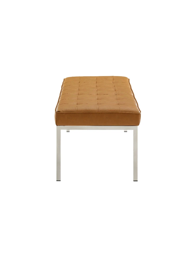 Revolutionize your living room furniture with the iconic Loft Tufted Button Faux Leather Accent Entryway Bench. Adding visual depth to your living room or lounge space, Loft features soft and durable faux leather upholstery accented in elegant button tufting. This modern living room accent bench comes in a captivating linear design with an external tubular stainless steel frame, four stainless steel silver legs, and non-marking foot caps. Inspired by the richness of mid-century modern style, Loft is the preferred choice of living rooms and lounge spaces. Bench Weight Capacity: 300 lbs.