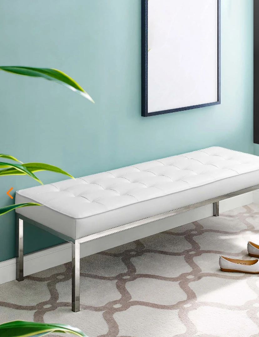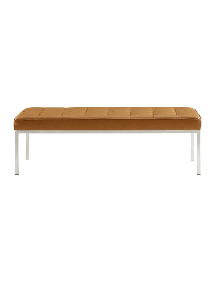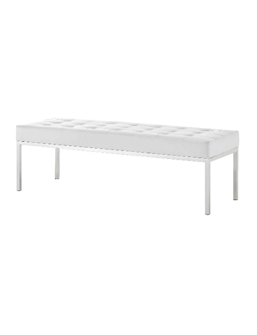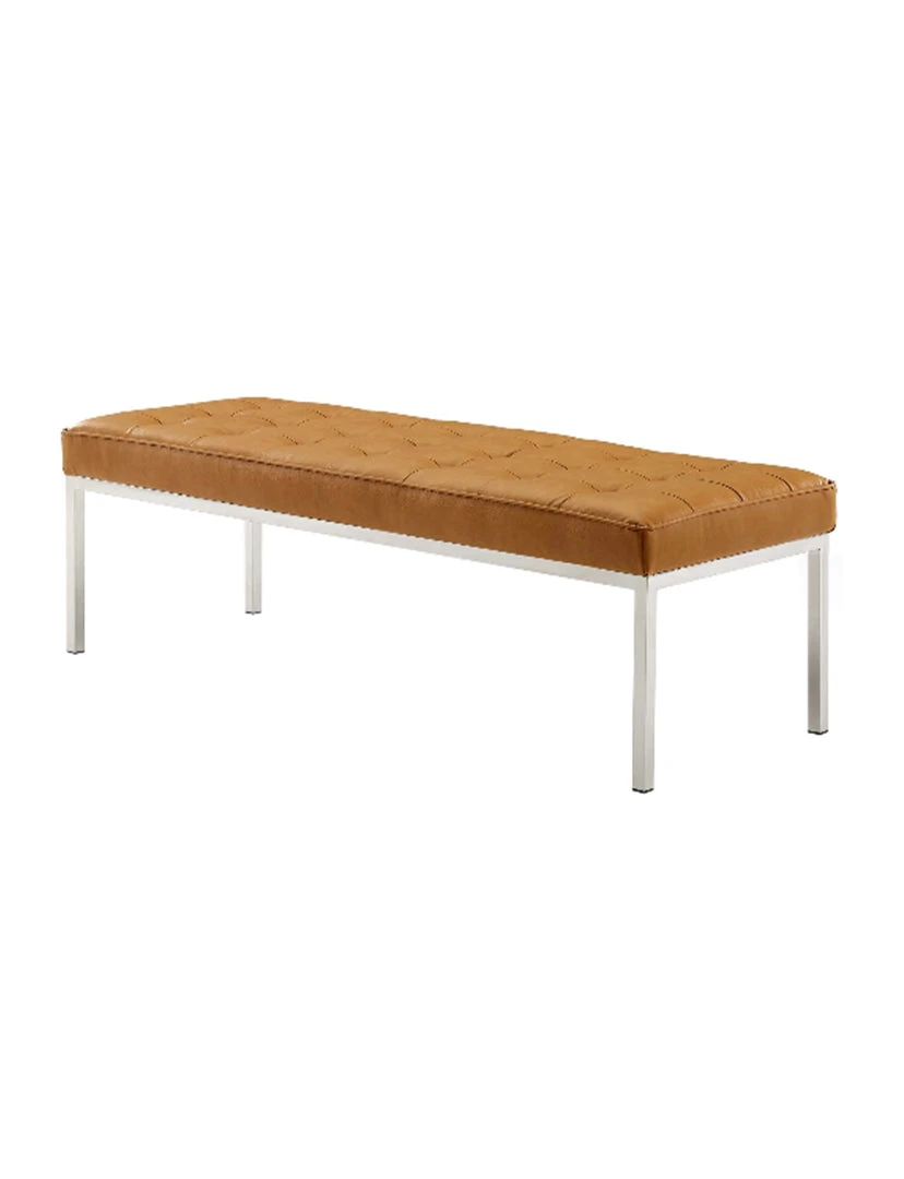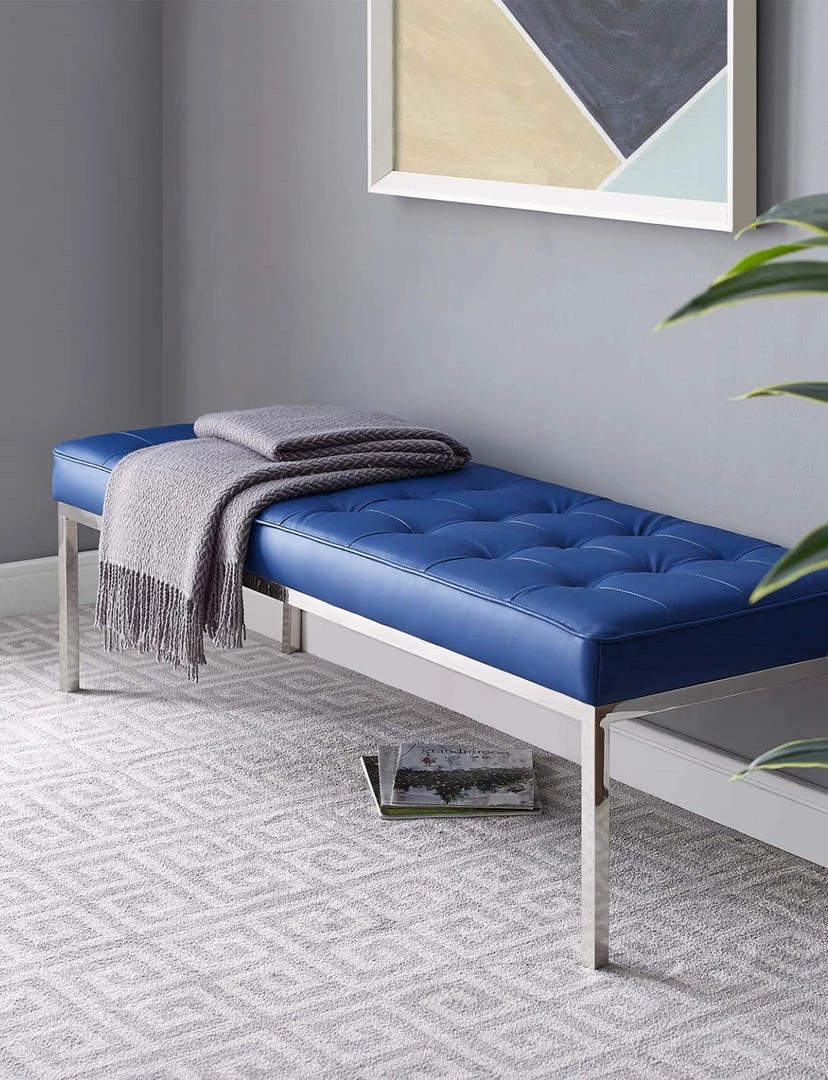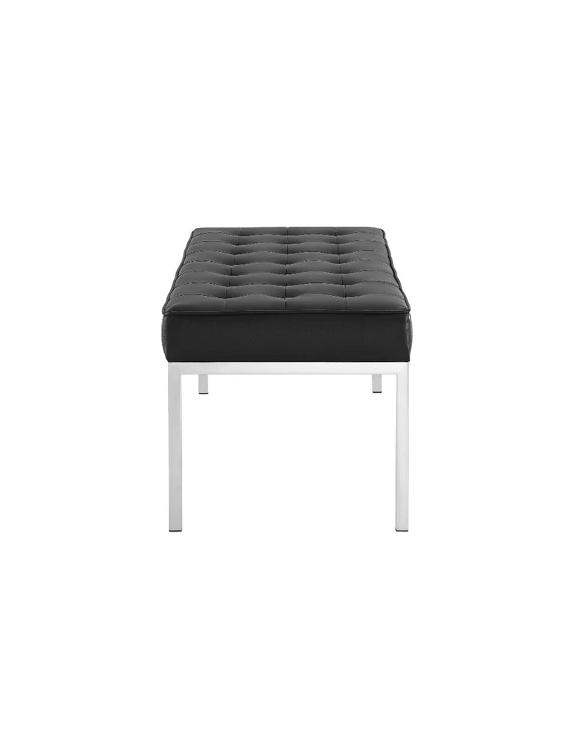 Revolutionize your living room furniture with the iconic Loft Tufted Button Faux Leather Accent Entryway Bench. Adding visual depth to your living room or lounge space, Loft features soft and durable faux leather upholstery accented in elegant button tufting. This modern living room accent bench comes in a captivating linear design with an external tubular stainless steel frame, four stainless steel silver legs, and non-marking foot caps. Inspired by the richness of mid-century modern style, Loft is the preferred choice of living rooms and lounge spaces. Bench Weight Capacity: 300 lbs.