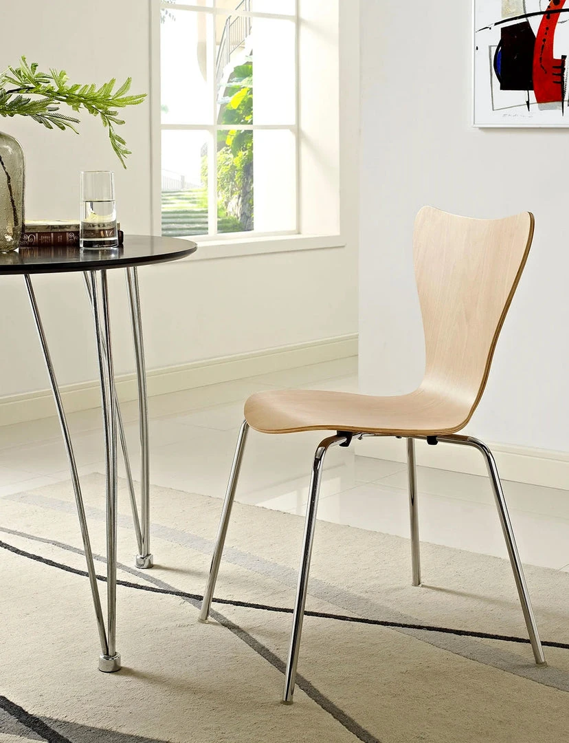 Minimalist in nature though it may be, this seat doesn’t skimp on comfort. Its seemingly rigid design, flexes to the contours of the human body, making it a great side chair for dining and home office use.
