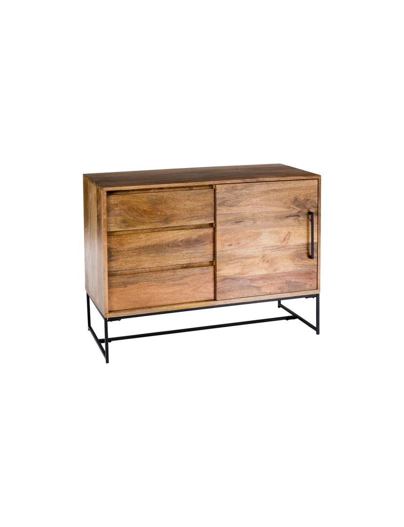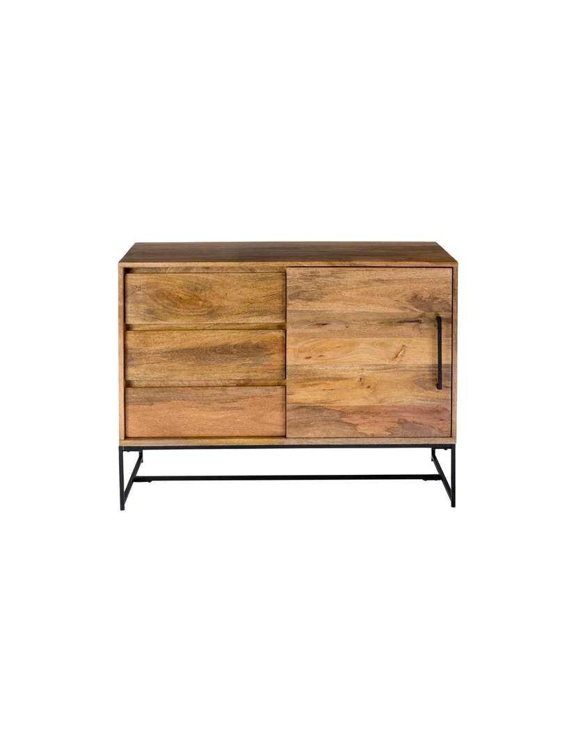 The Colima sideboard features strong clean lines complete with iron detailing to accompany its sophisticated Scandinavian design. Made of solid mango wood, this unit features a natural unique woodgrain and knot pattern. A drawer and cabinet combination allows for extra bedside or living room storage.