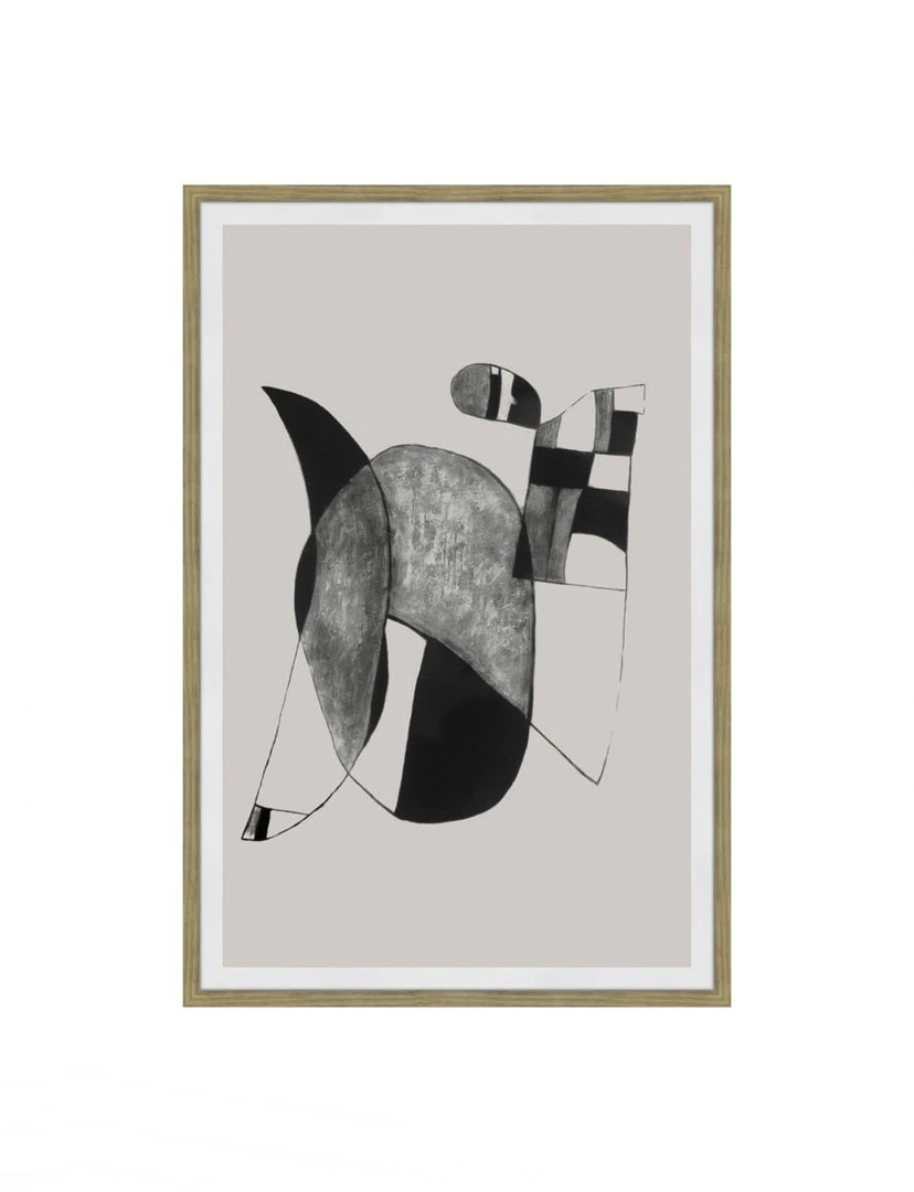 Shadow and light come together in the Happiness II wall art painting, an abstract ink print to elevate your decor scheme. A simple plain background couples with textured, amorphous spheres, all illustrated with simple lines, blacks and whites. A polystyrene frame with oak finish adds an organic, polished quality to this print.