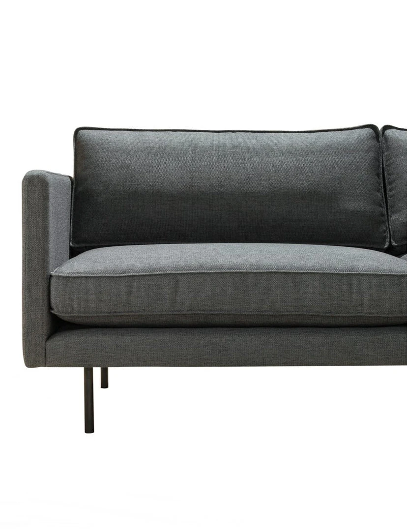 The Buon Sofa’s mid-century modern design and deep-set cushions make this the ideal sofa for long movie marathons. Perfect for smaller condo’s and seating areas, Raphael’s slim design allows it to accommodate three people comfortably. Lavish in texture, softness, depth and with tapered arms to give this design a clean-cut luxe look.