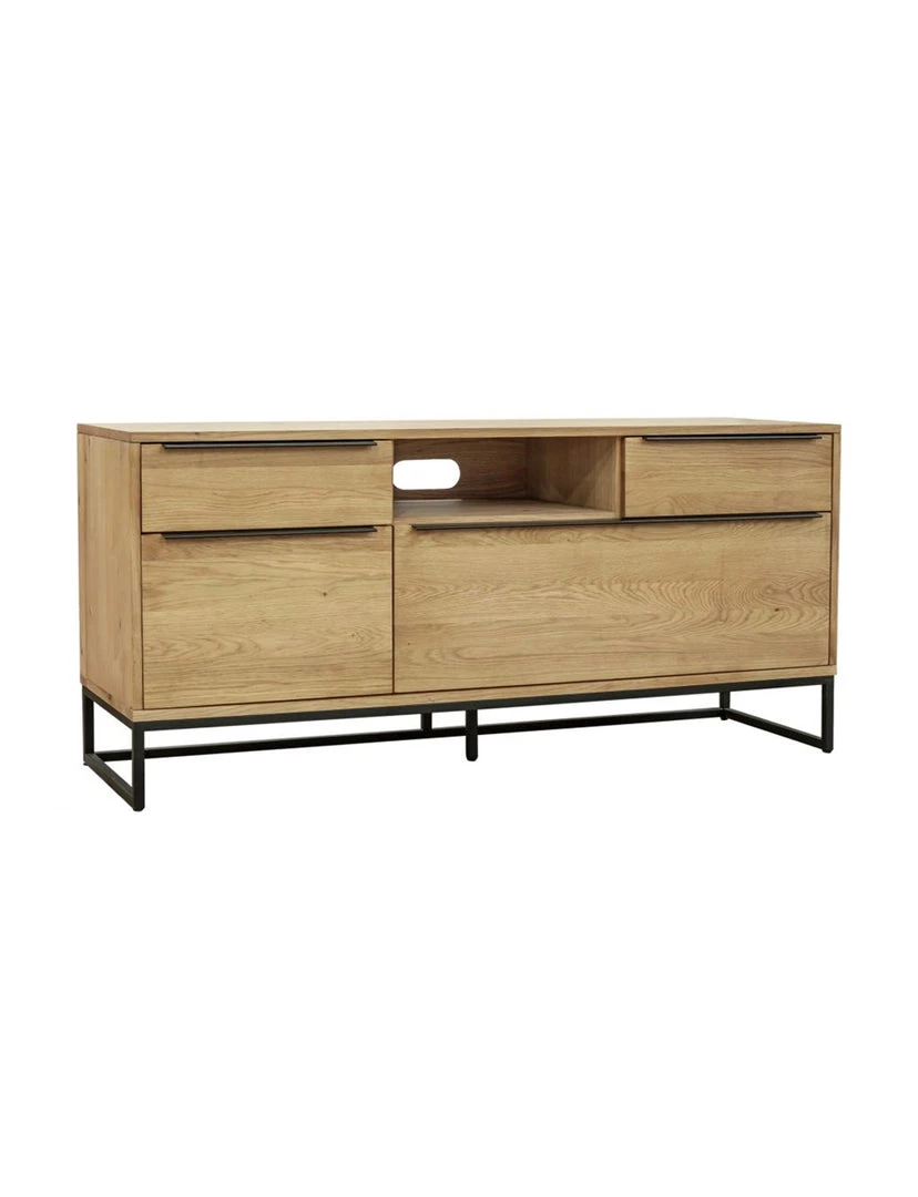 The Nova Media Cabinet is the ultimate media storage. Complete with drawers and cabinets, you’ll have plenty of room to store everything from books to photo albums to board games. Long-lasting oak and a metal base make this a solid piece for your home.