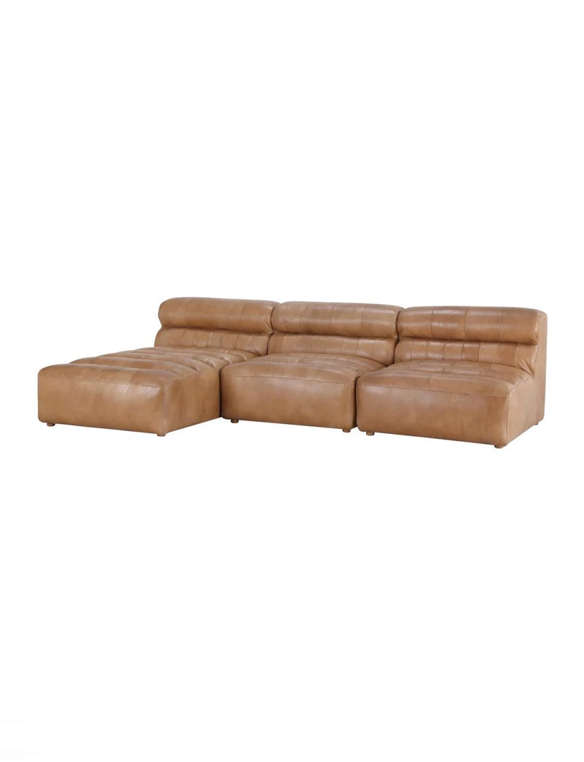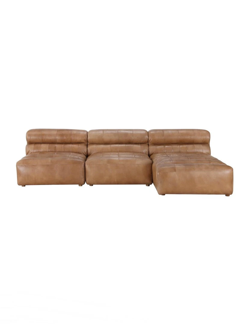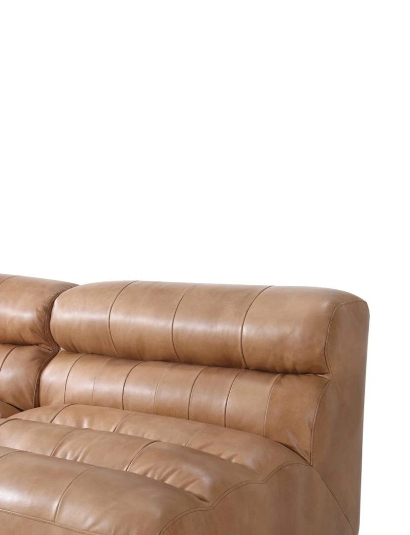 Outfit your space with comfort and quality, which you are sure to find in the Ronan Sectional. Ribbed top-grain leather will wear with a unique worn patina over time, making this modular an item you can love for years to come.