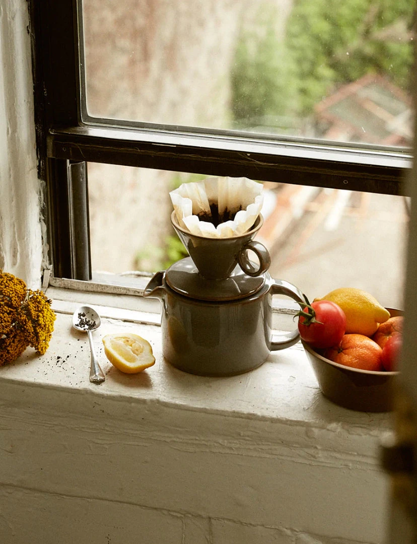 A tea pot, like a wheel, needs no reinvention simply elevation. Ours is an ode to the pragmatic and the purposeful, offering a timeless silhouette in our signature tones. The stoneware pot and lid retain heat while the tapered lip propels an easy pour. Pair this tea pot with our pourover to effortlessly brew a pot of coffee to sip on solo or share.