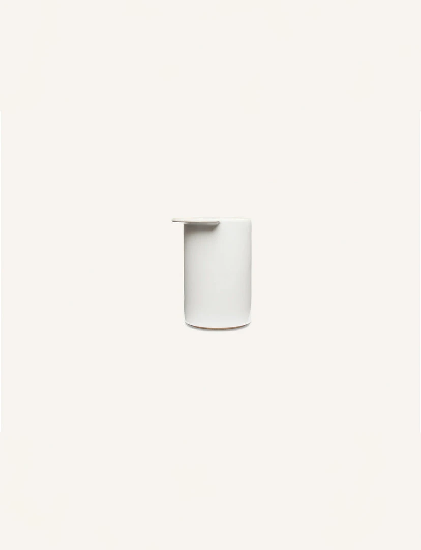 This vessel brings reimagined possibilities to our signature ceramic designs. Crafted with the same core commitments, the cylindrical shape and half-lip edge form a product both practical and pleasing. From day to night, use it to store your toothbrush or a favorite ballpoint pen.