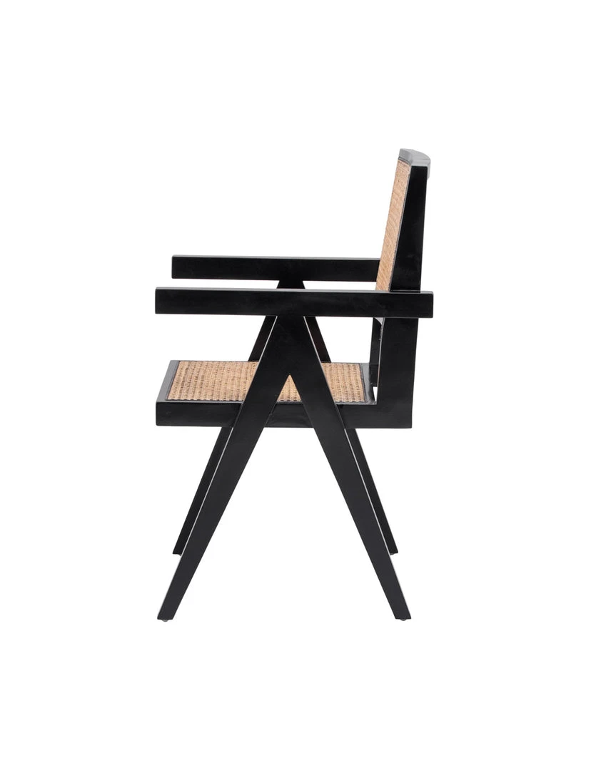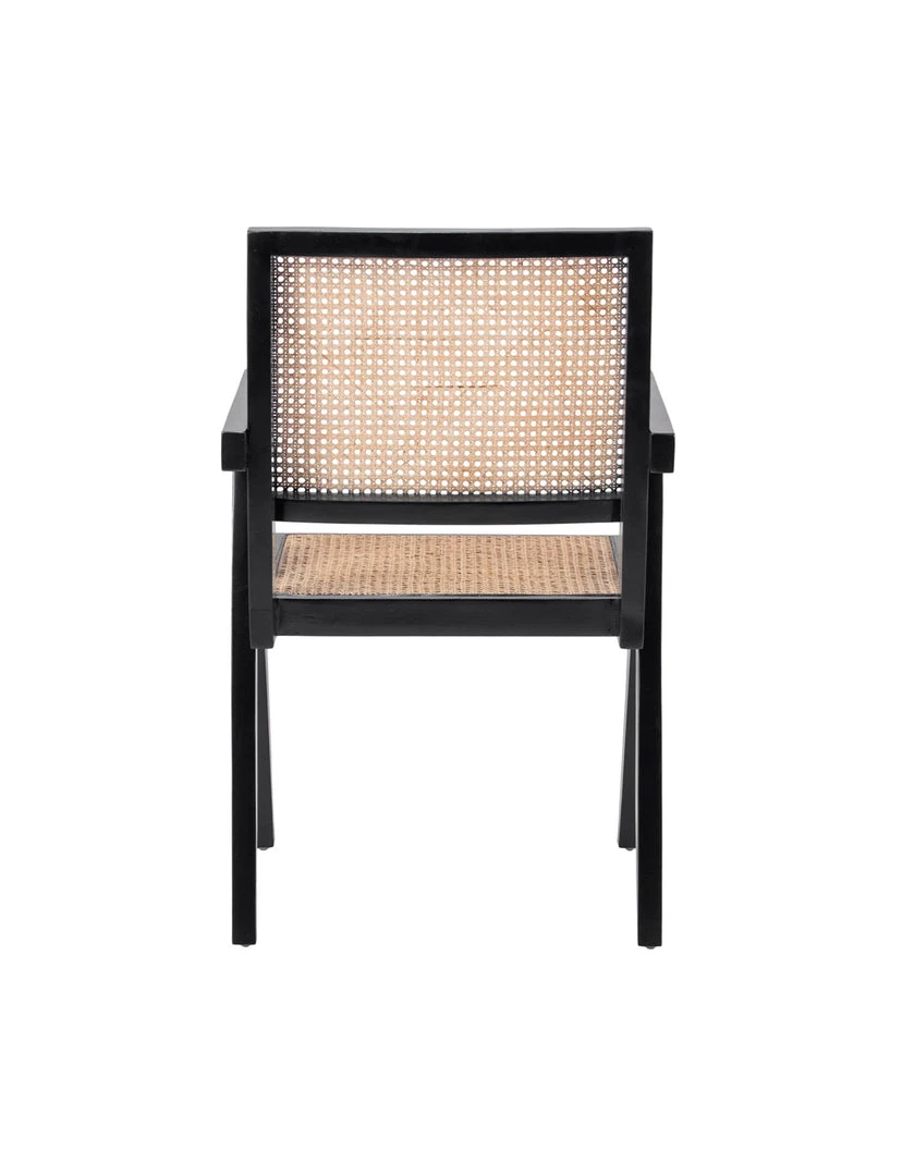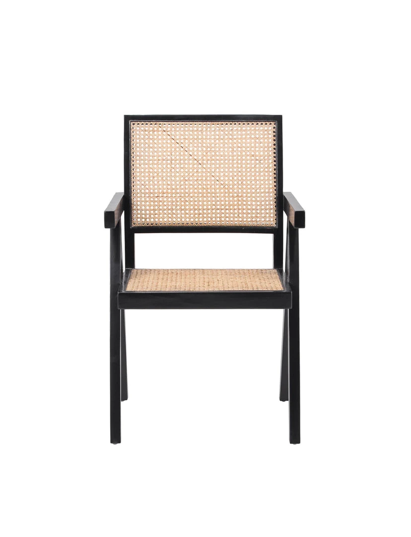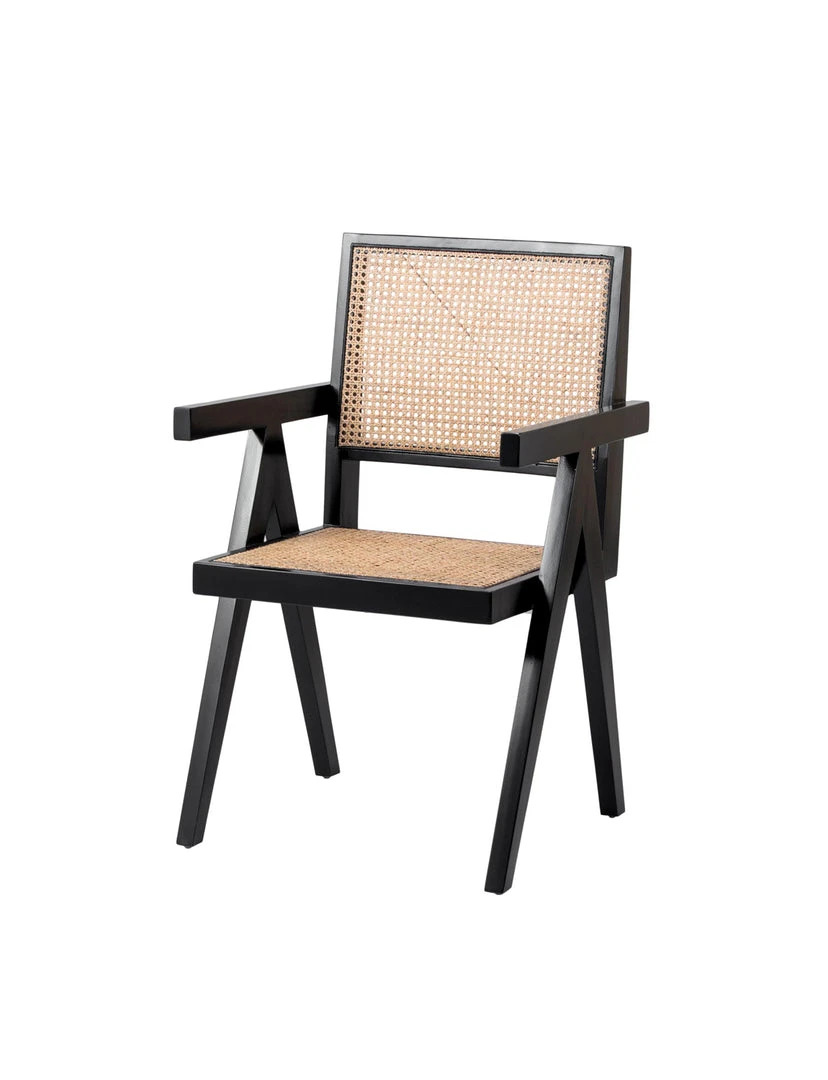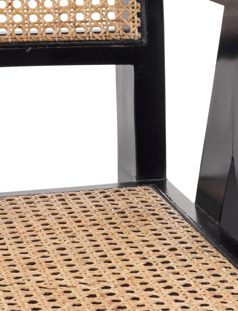 Mid-Century inspired featuring Black painted Mahogany wood frame, contrasted beautifully with Cane webbing seat and backrest. V-shape leg base complete the stylish look.