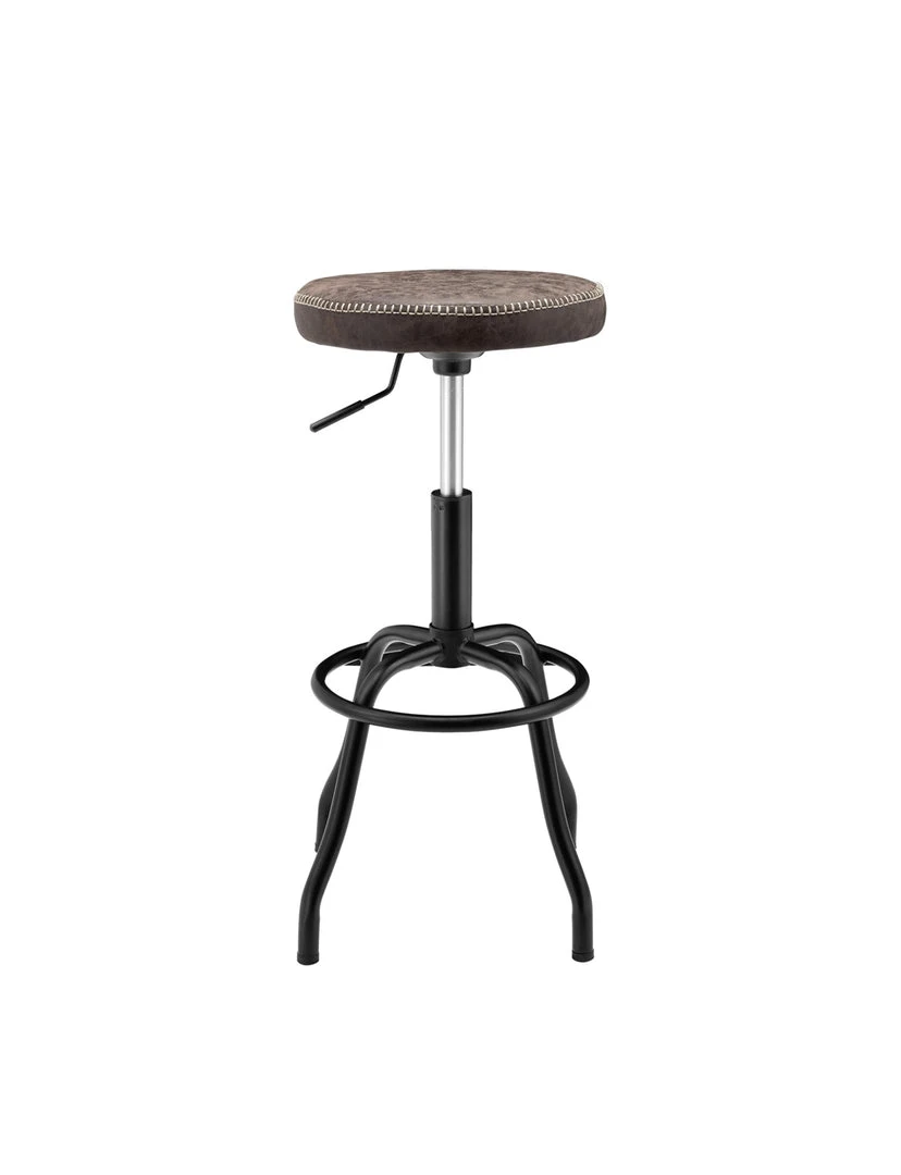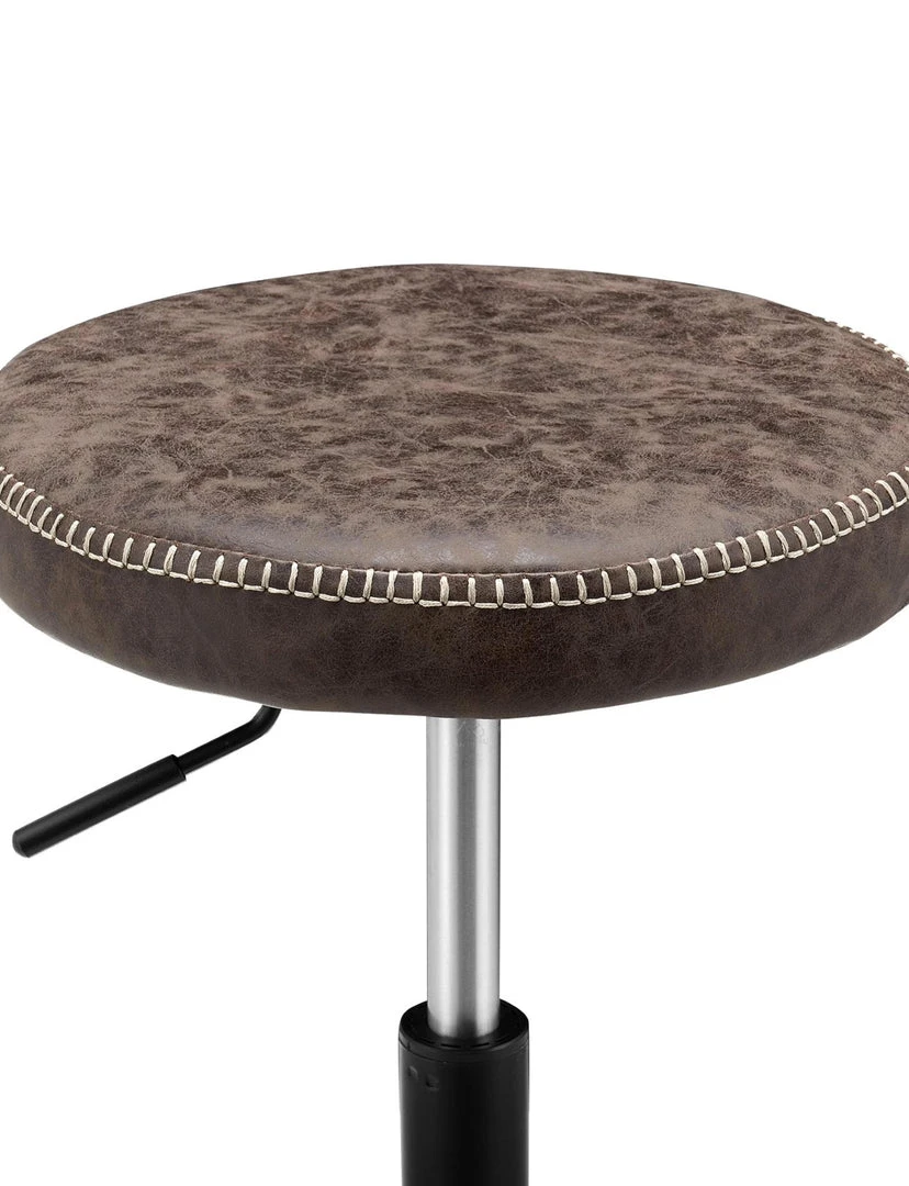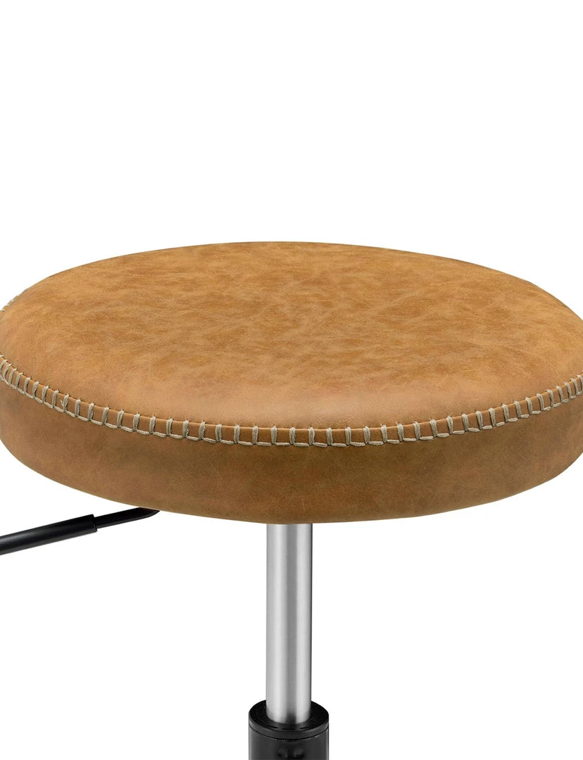 Elot adjustable-height stools can be put to work in several places in the home. They step up to the occasion wherever counter-height seating is needed. They rise to the occasion to provide bar table-height seating. Or, choose an Eaton stool for the office as an alternative to a task chair. Choose Coffee Brown or Vintage Cedar faux leather covers; note the decorative stitching on the upholstered seats.