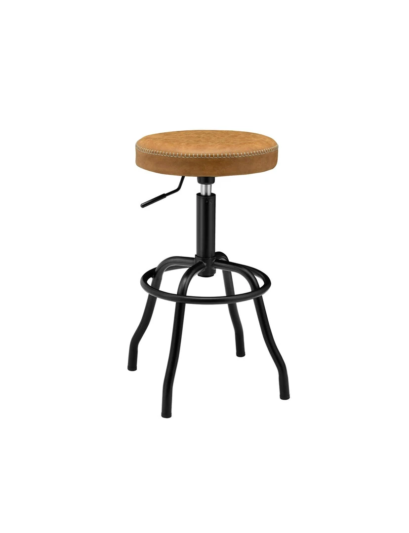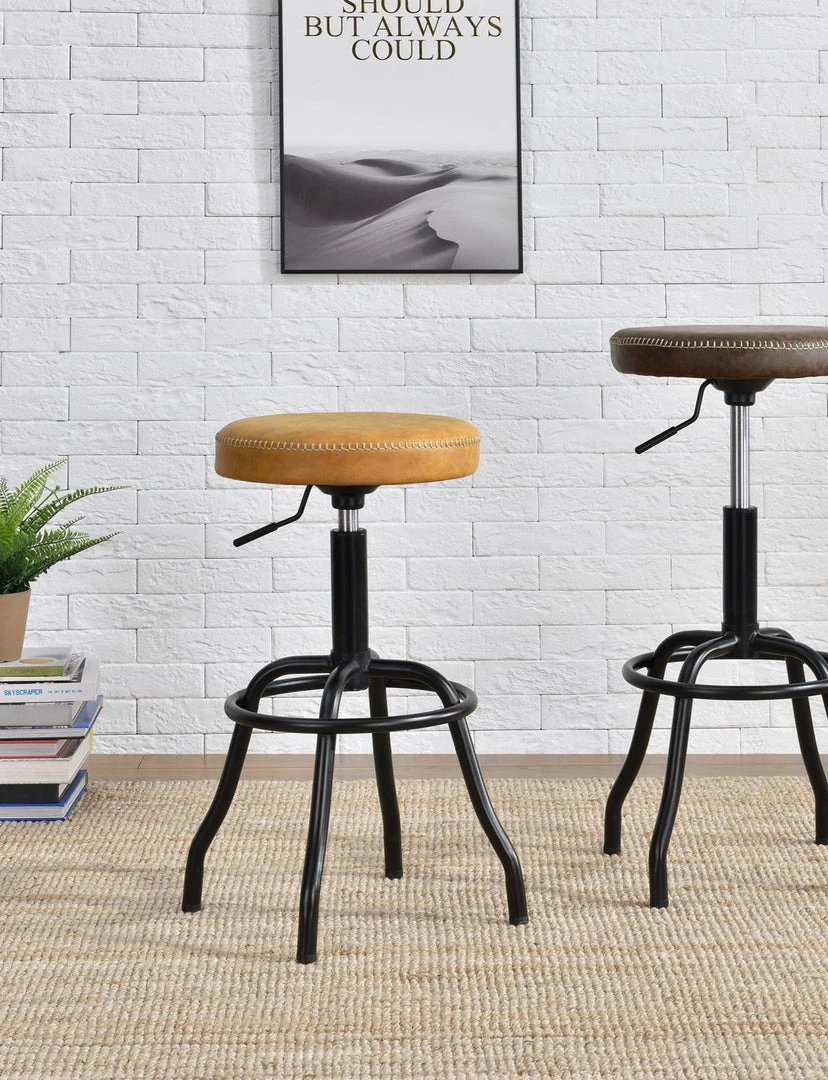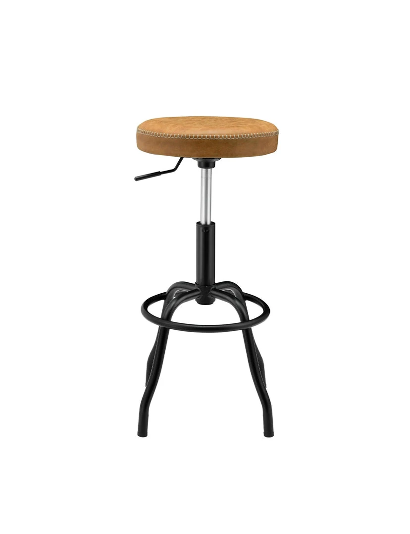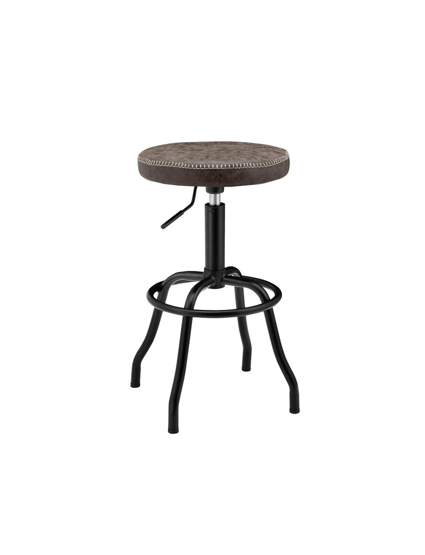 Elot adjustable-height stools can be put to work in several places in the home. They step up to the occasion wherever counter-height seating is needed. They rise to the occasion to provide bar table-height seating. Or, choose an Eaton stool for the office as an alternative to a task chair. Choose Coffee Brown or Vintage Cedar faux leather covers; note the decorative stitching on the upholstered seats.