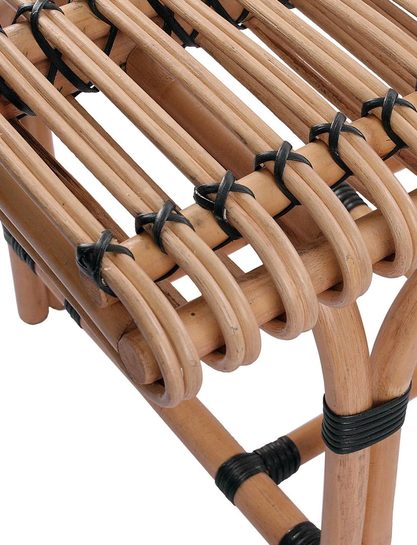 In gently curving appeal, this gorgeous bench is entirely constructed of rattan poles and hand-wrapped with dyed Black rattan peels for design contrast and construction stability.