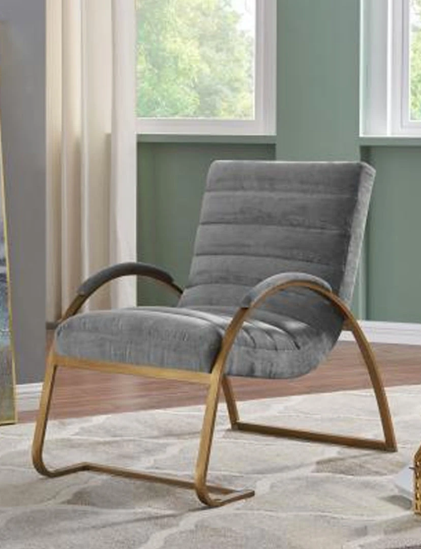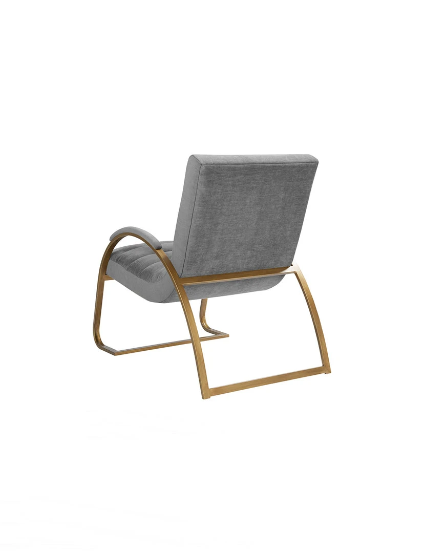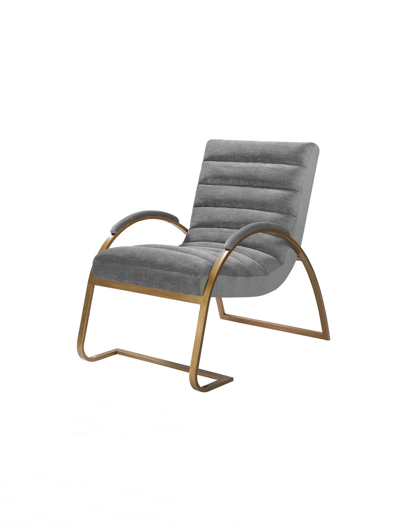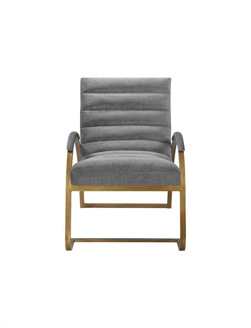 Modern Bauhaus style accent chair features signature tubular steel, cantilevered legs. Beautifully contrasted with channeled fabric upholstery and armbands in Light Gray tone