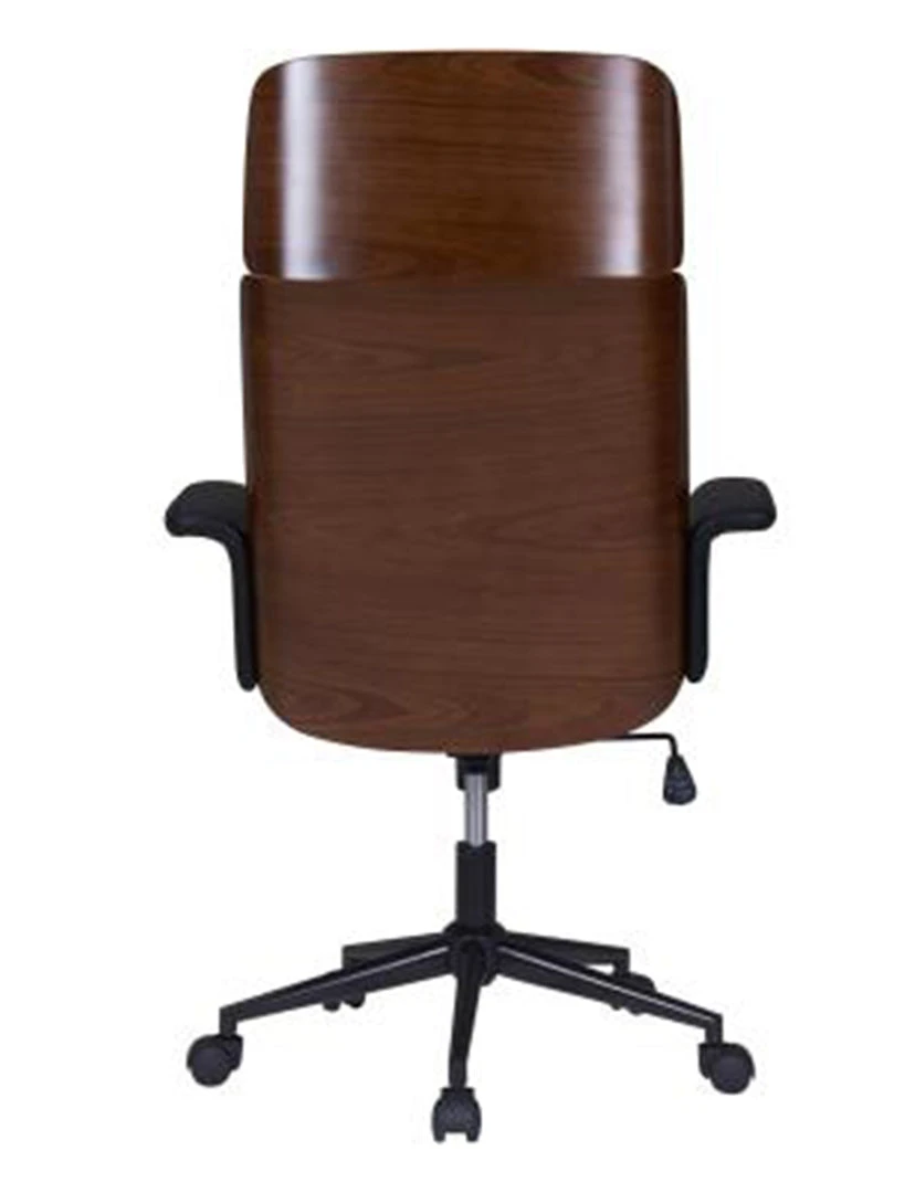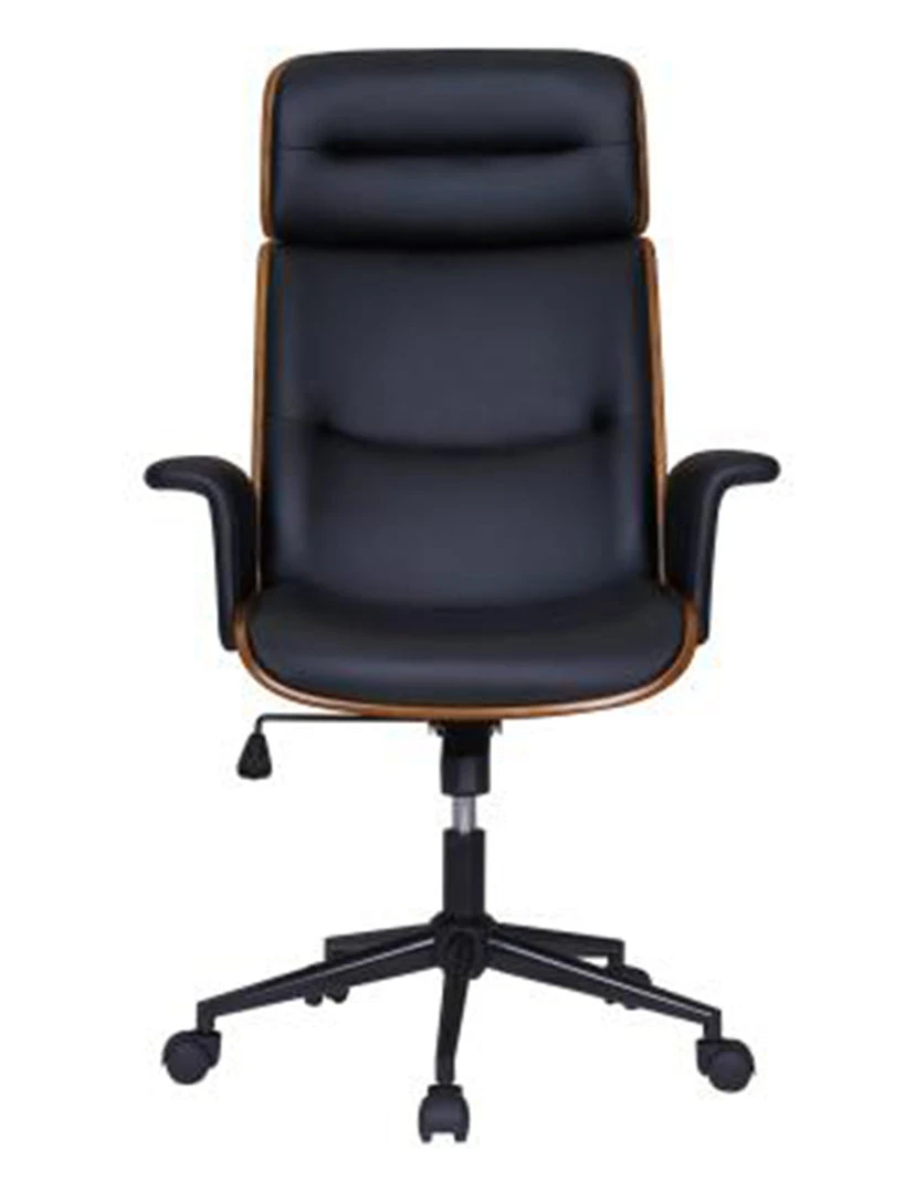 Chic modern design works with a variety of office styles, 360-degree swivel base and easy seat-height adjustment that highlights bent wood frame in Walnut and sleek faux leather upholstery.