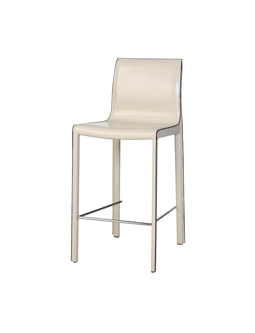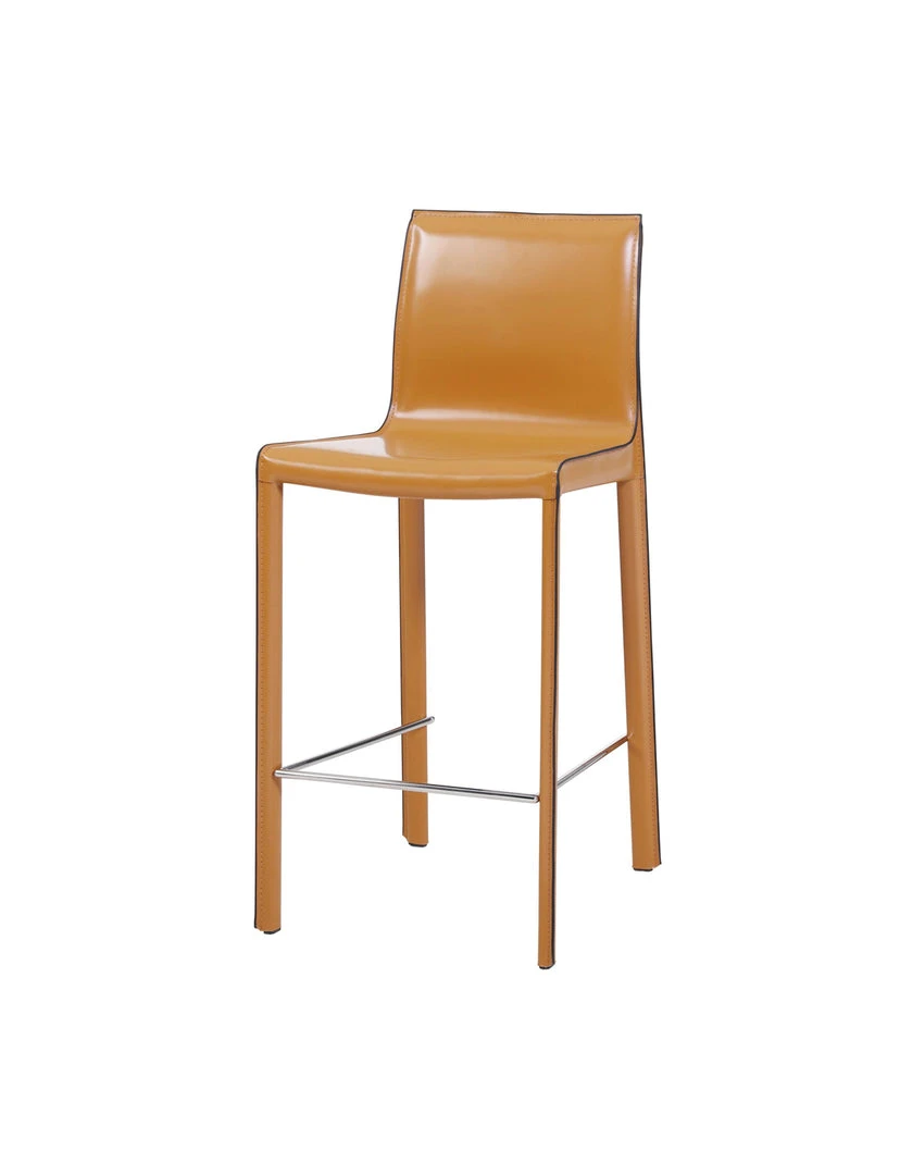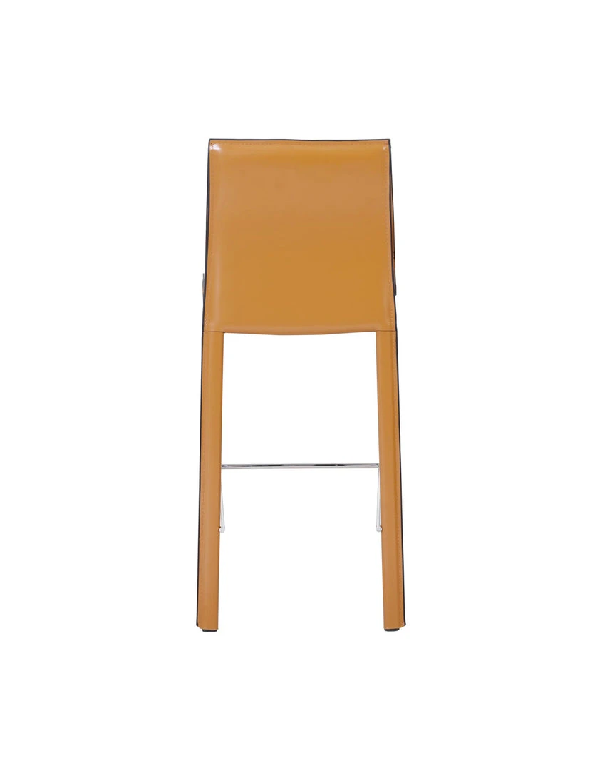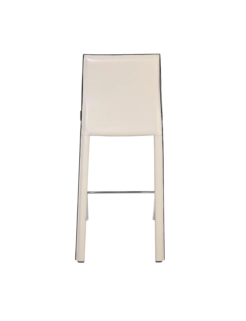 MINIMALIST MODERN STYLE – in clean, non-fussy silhouette with piping detail, this 38″ height counter stool utilizes recycled leather as upholstery. Constructed with foot stretcher for comfort and powder coated steel legs for sturdiness.