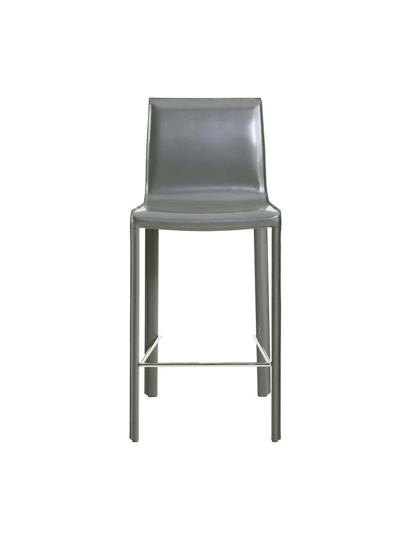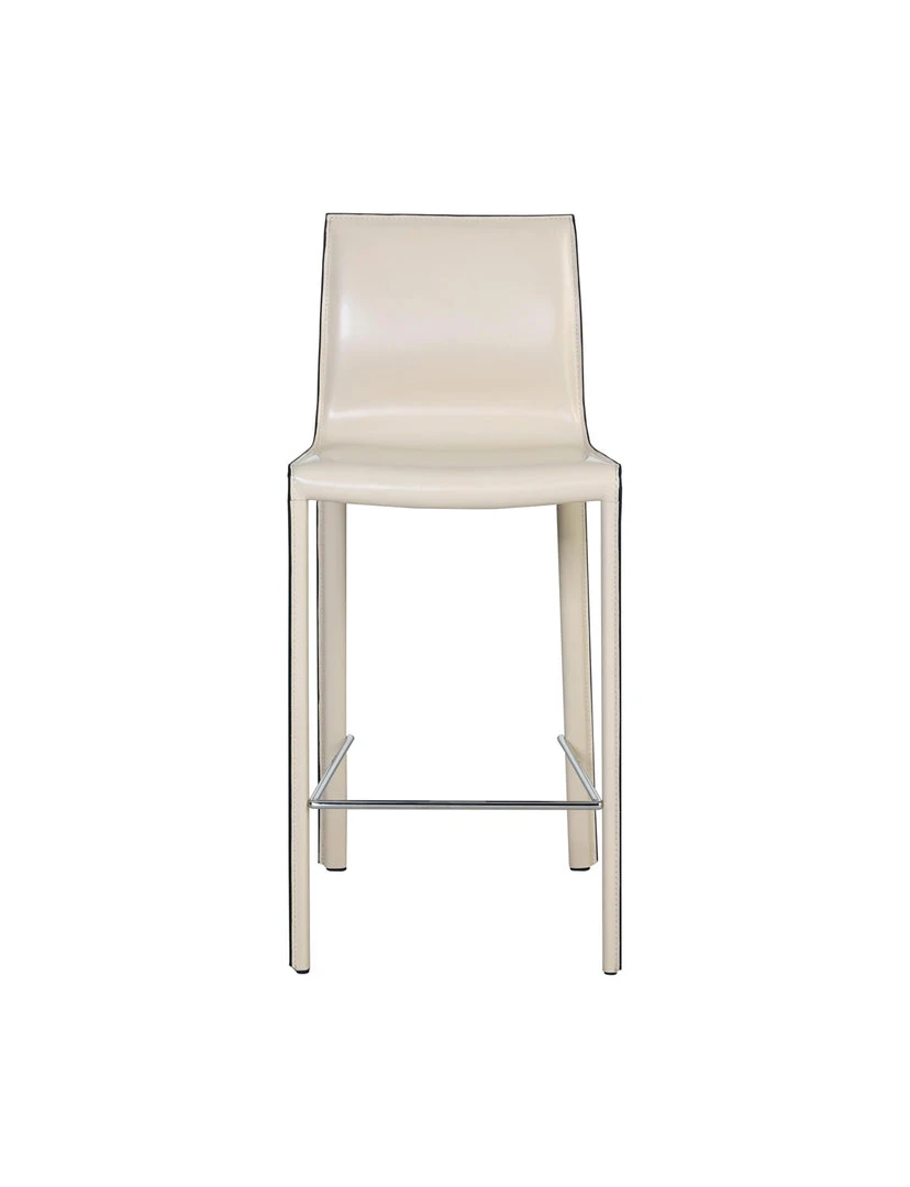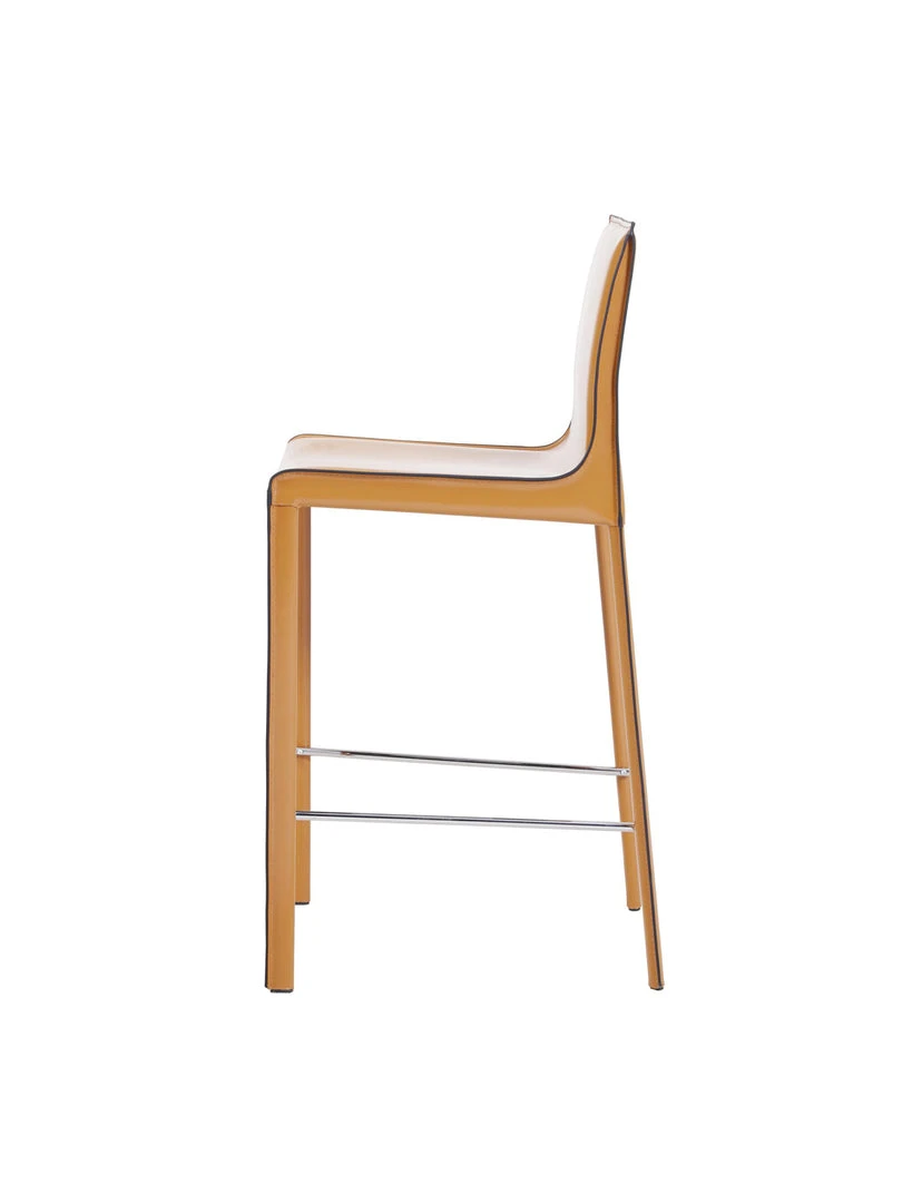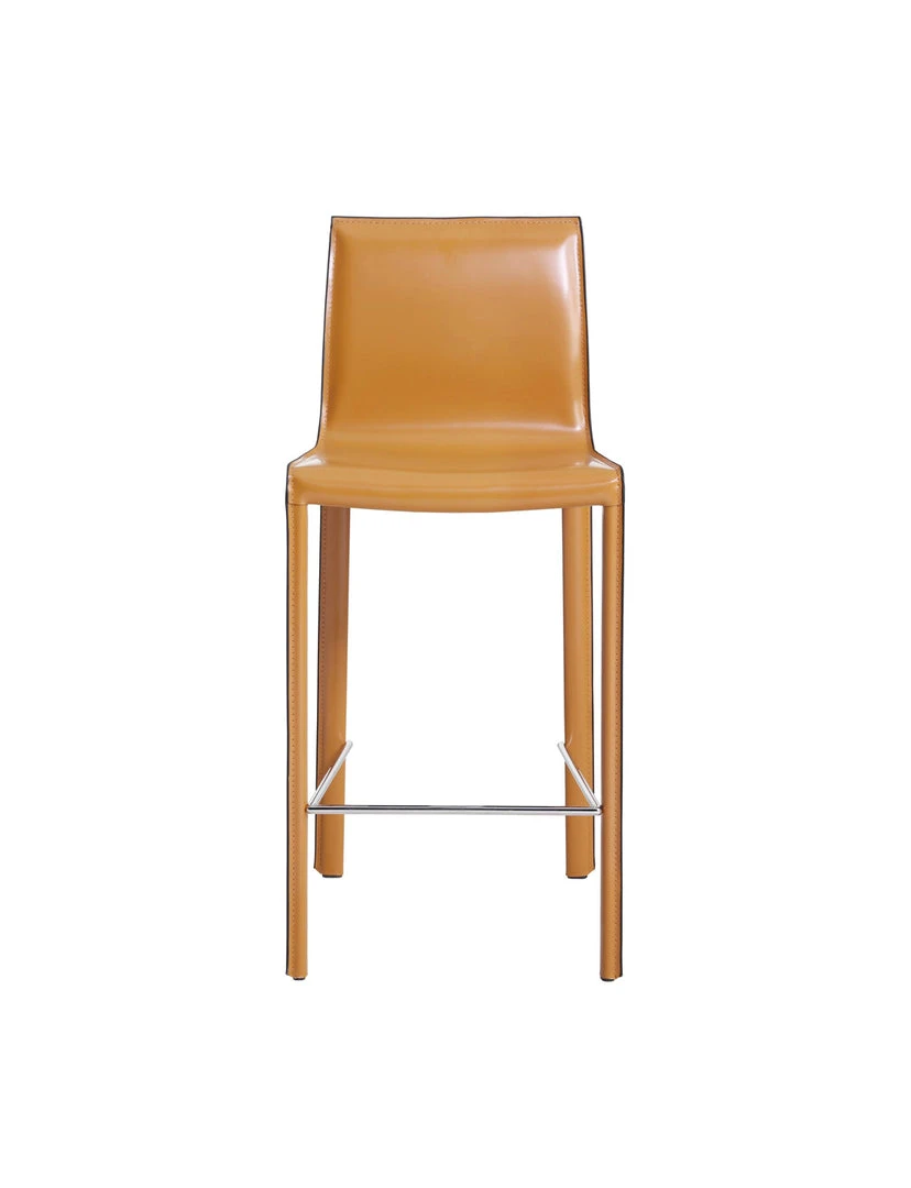 MINIMALIST MODERN STYLE – in clean, non-fussy silhouette with piping detail, this 38″ height counter stool utilizes recycled leather as upholstery. Constructed with foot stretcher for comfort and powder coated steel legs for sturdiness.
