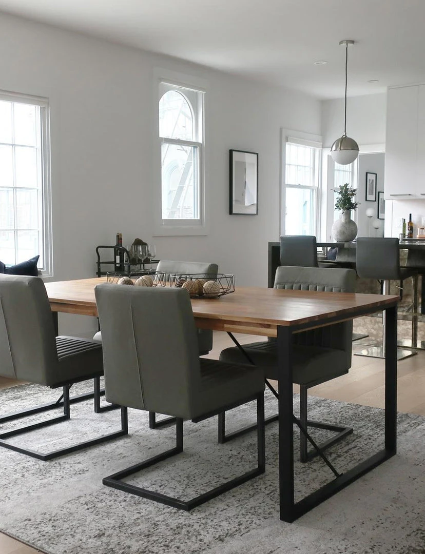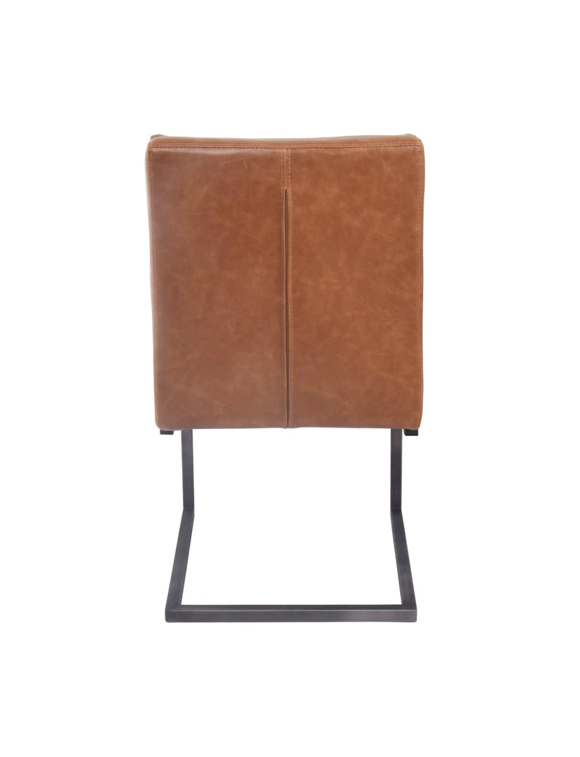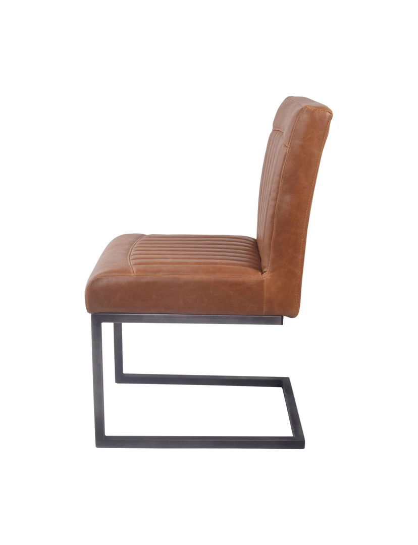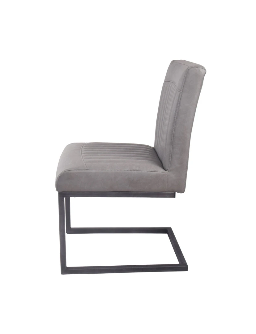 MODERN INDUSTRIAL – With a vintage appeal design in mind, the Robin chair highlights chic channel tufting, while tailored in antique brown faux leather upholstery and fashioned on gray cantilever legs.