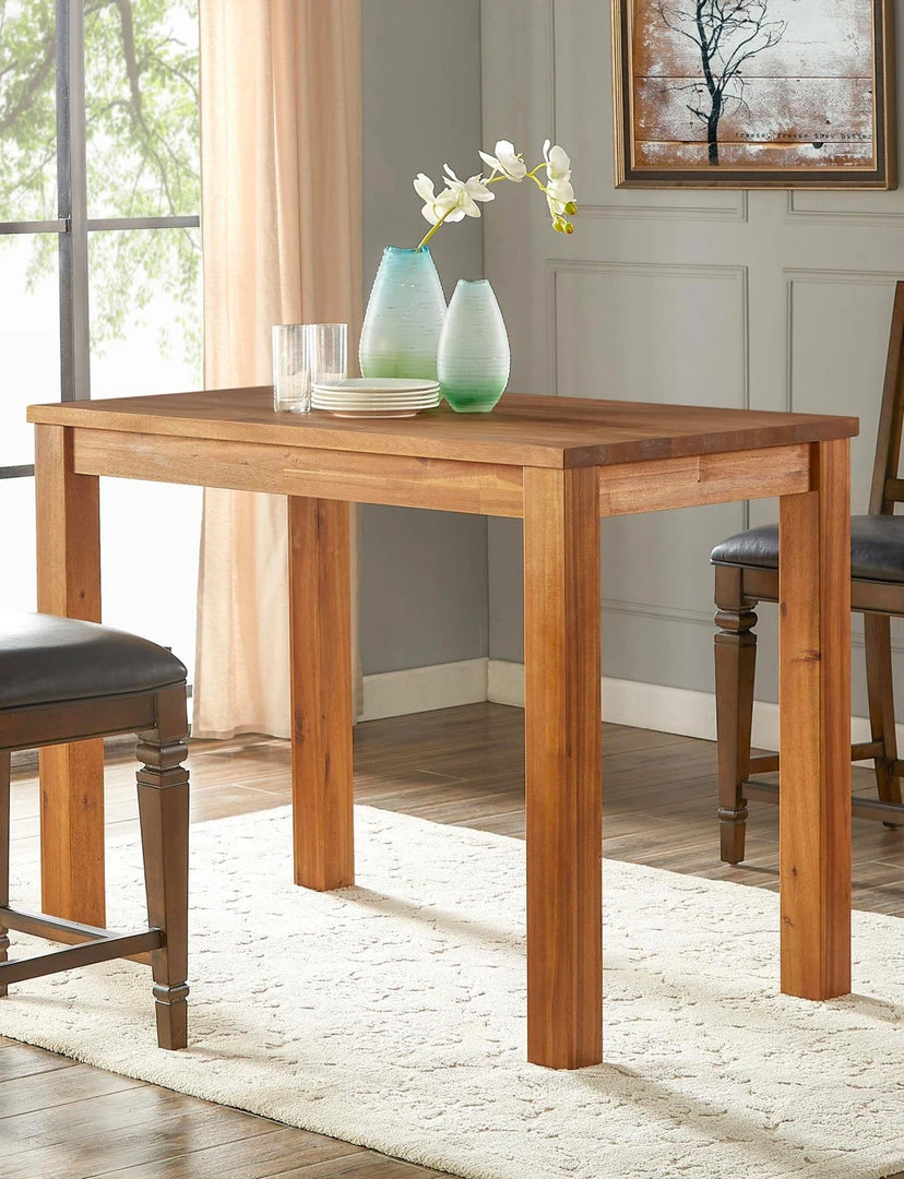 Basic + Functional high table crafted of acacia wood. Use this as your dining table or for a mancave setting. Ideal for small spaces or bar type setting.