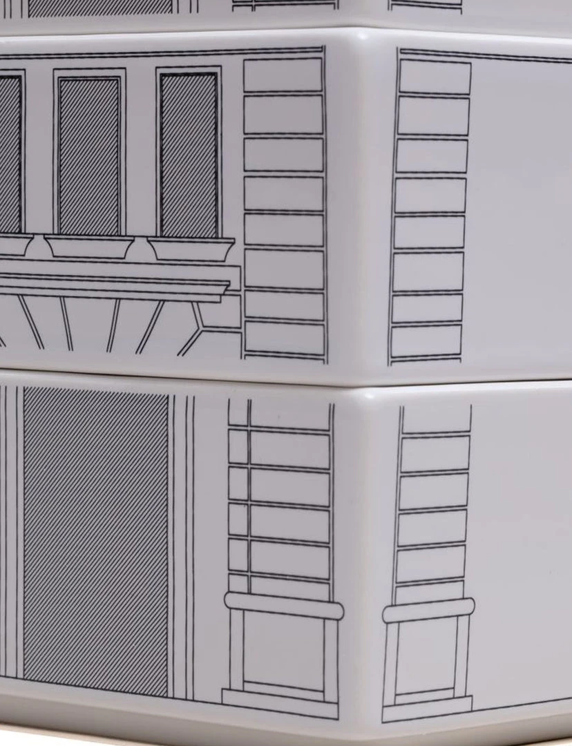 Palace, the tableware set that pays tribute to the Italian Renaissance, comes back to our tables with a fresh new look: a series of modular plates, bowls and trays made of ceramic from Limoges and shaped as four iconic mansions, with refined details and an even more practical and functional design.