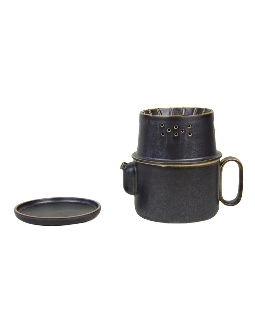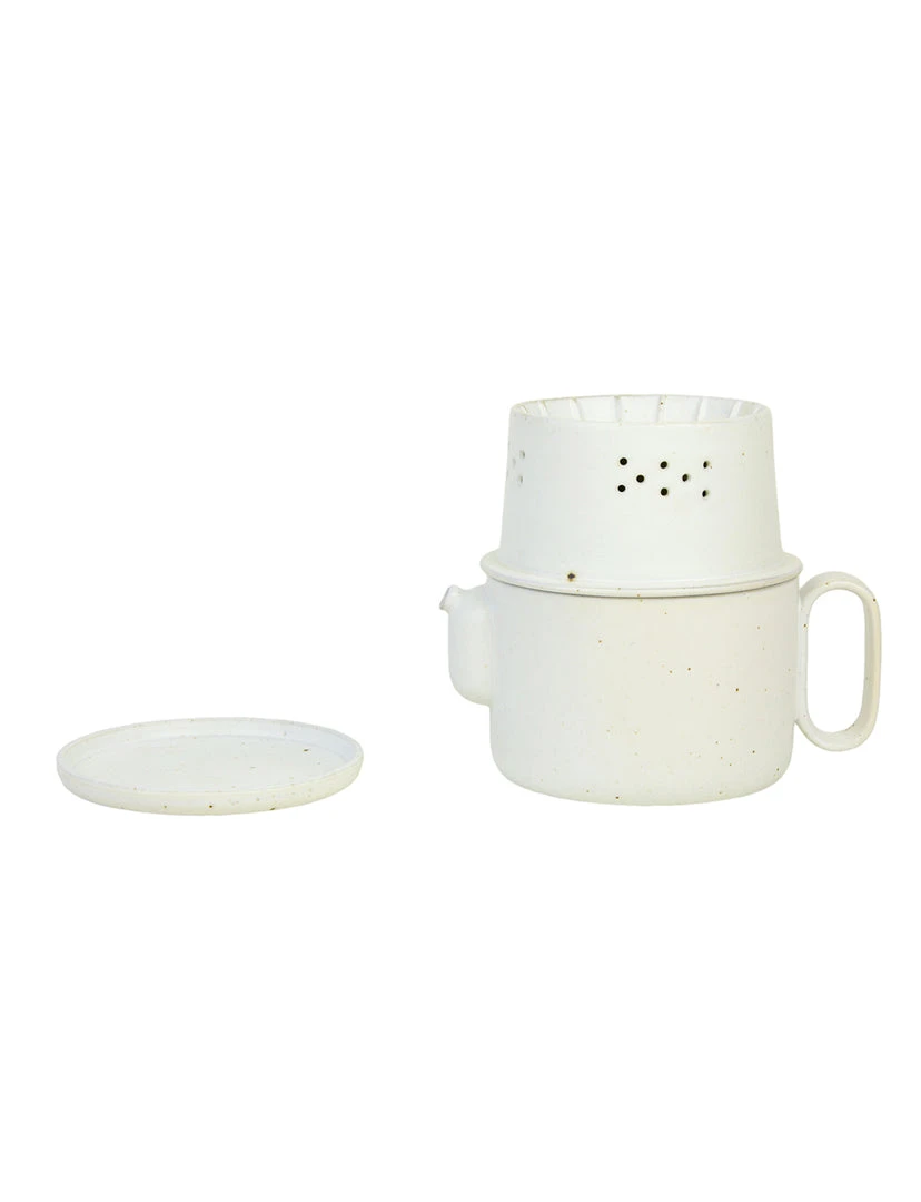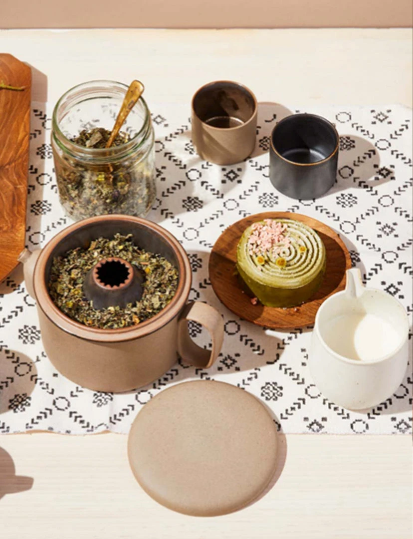 At its core, our Ozu Ceramics collection embodies the wabi-sabi spirit of traditional Japanese aesthetics, and yet we think it’s first impression is undeniably modern. These bijou silhouettes for intimate tea and coffee service are at once rustic and elegant, and our three unique glazes — salt, graphite, and matte clay — are equally distinctive, whether shown together or apart. The cornerstone of this collection is the inspired, three-piece Tea & Coffee Pot that is both; remove the lid and fill the inserted well with loose leaf teas to brew your favorite blend, or flip it over to use it with a size 1 paper coffee filter. The Sugar Bowl and Creamer are perfectly mismatched, each highlighted by a singularly charming little spout. Tea cups are pure and simple, while the demitasse coffee cups have hand-applied oval handles. And as a bonus — use the pot and tea cups for sake service!