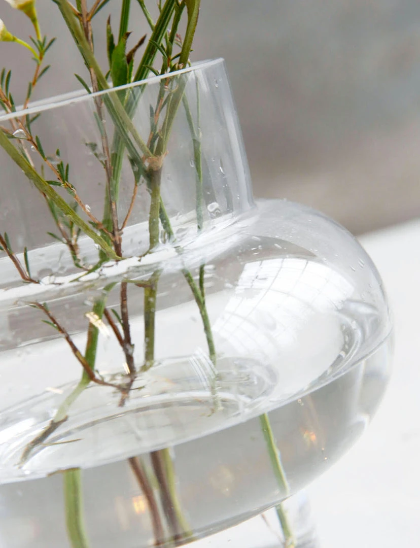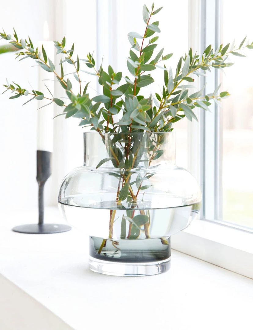 The Forms Low vase from House Doctor adds a light and elegant touch to any home. The beautiful vase is made of glass and comes in a light, smoky-grey colour that radiates of exclusivity. Use it as an eye-catching design element on a table, dresser or on your windowsill. You can also decorate it with a couple of this season’s most beautiful flowers or twigs from the garden, and then it will definitely become an eye-catching element in your home