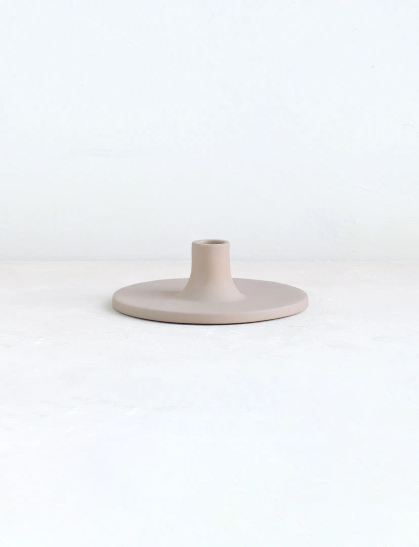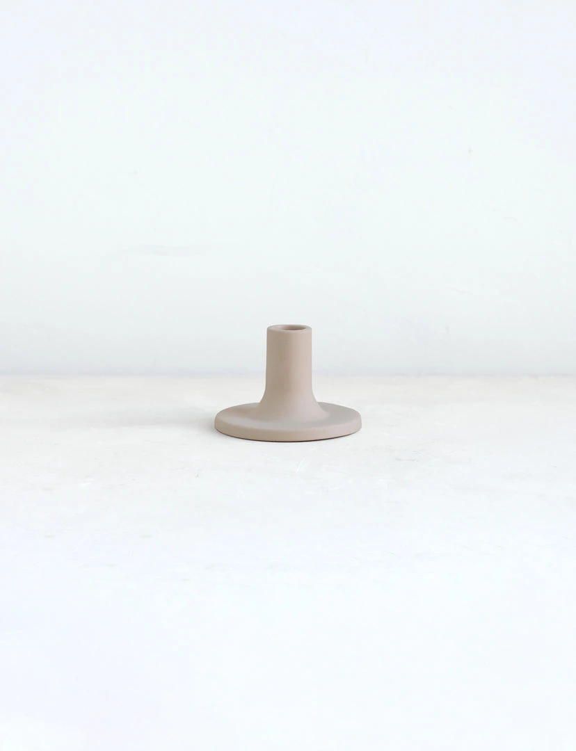 Our ceramic taper holders offer a fresh variation in shape and size and boast a clean, matte finish. With stand-alone appeal, they also feel dynamic as a collection. Each holder is sized to fit a standard taper candle. Due to the handmade nature of this product, slight form variations may occur.