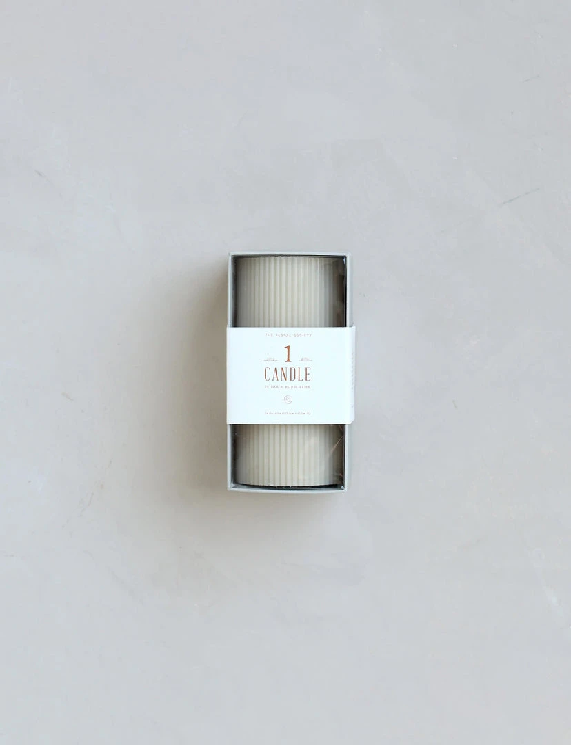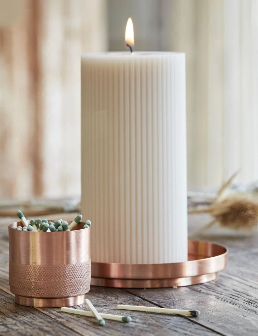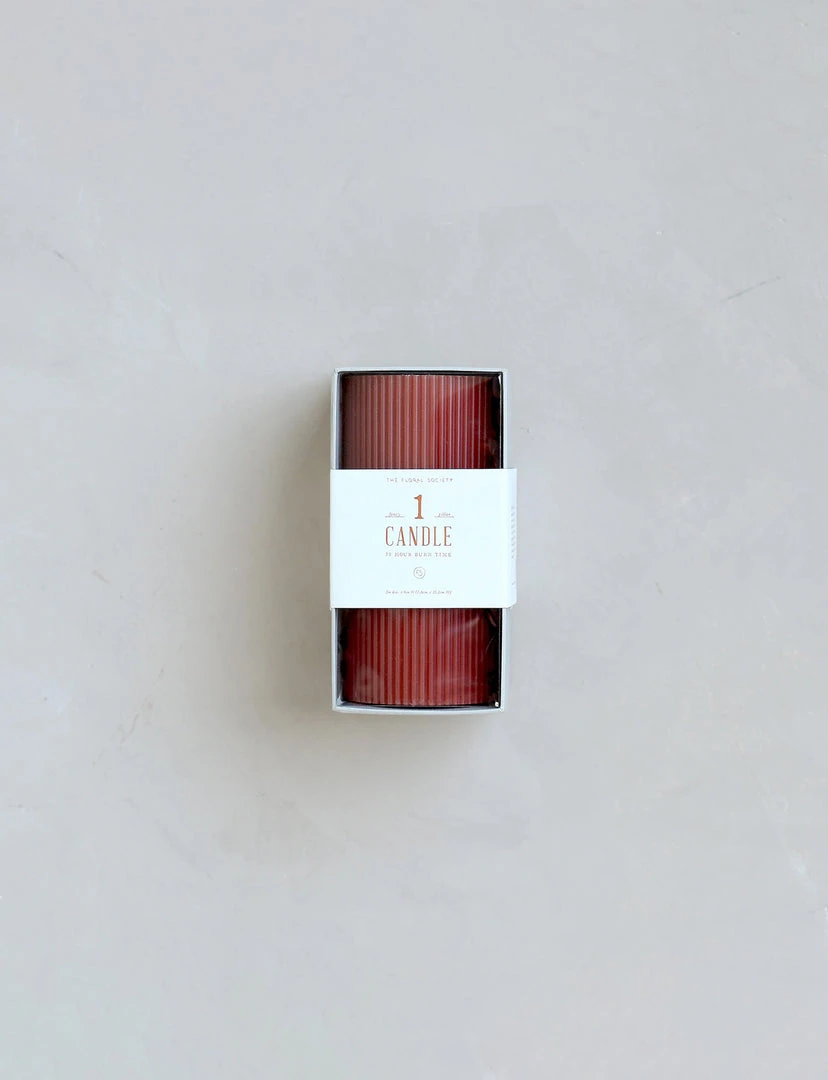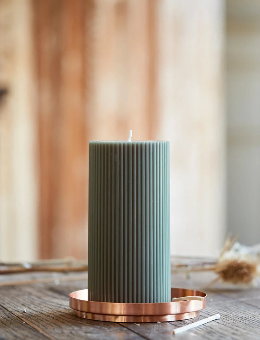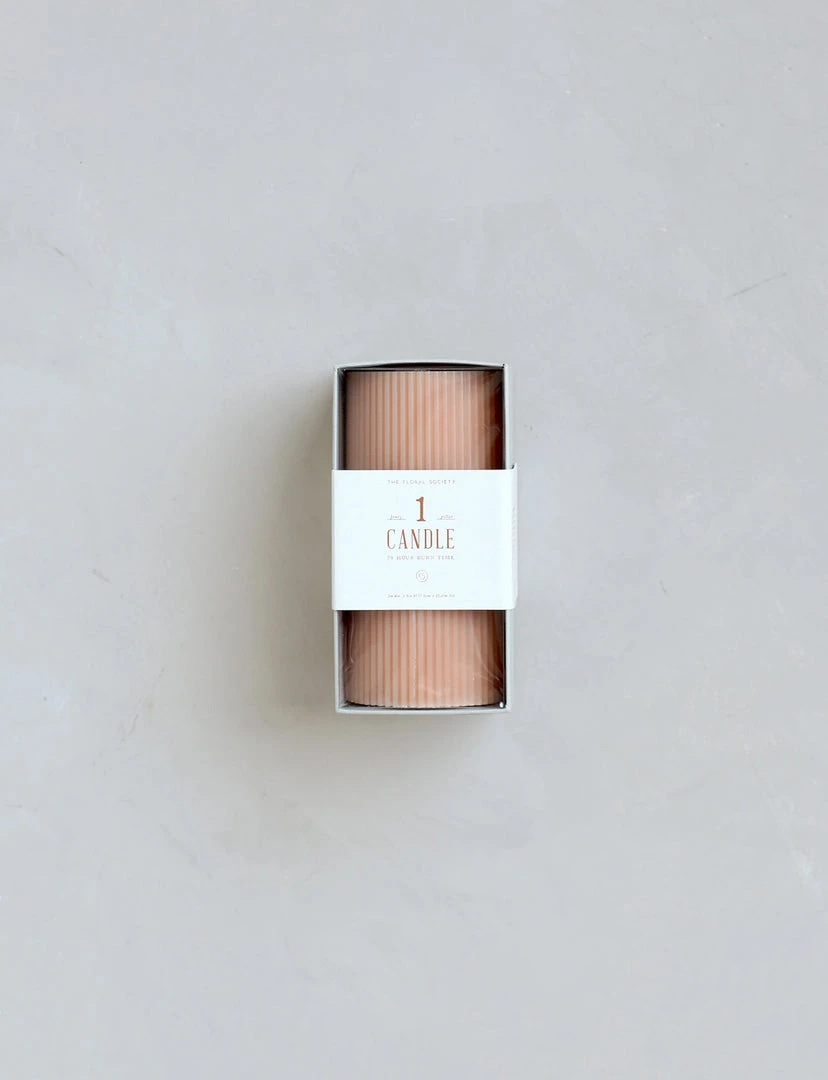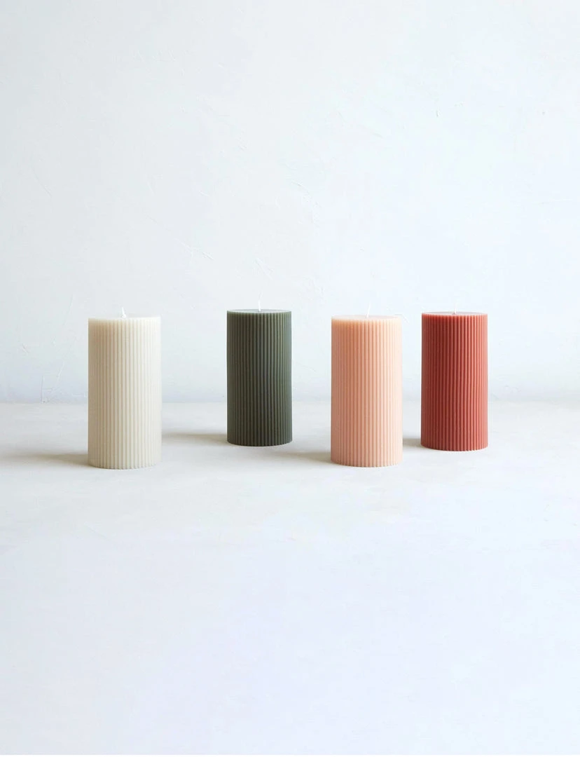 Our 3×6 ribbed pillar is a modern take on a traditional candle and embodies a superior depth of color, a cotton wick, and a 70-hour burn time. Subtle variations in wax depth and color opacity may occur. Available in 4 custom colors: Parchment, Moss, Petal & Clay.