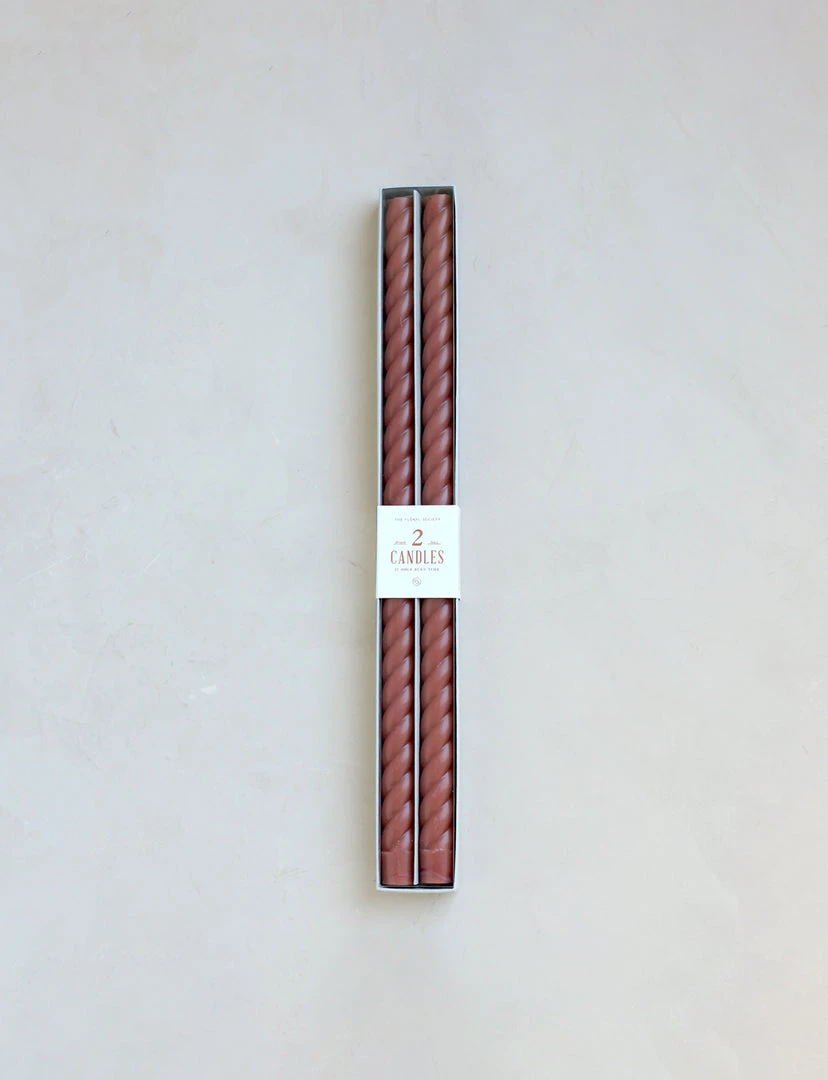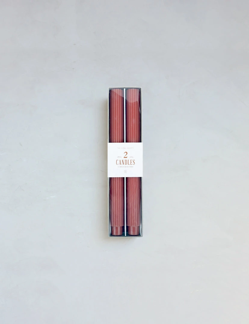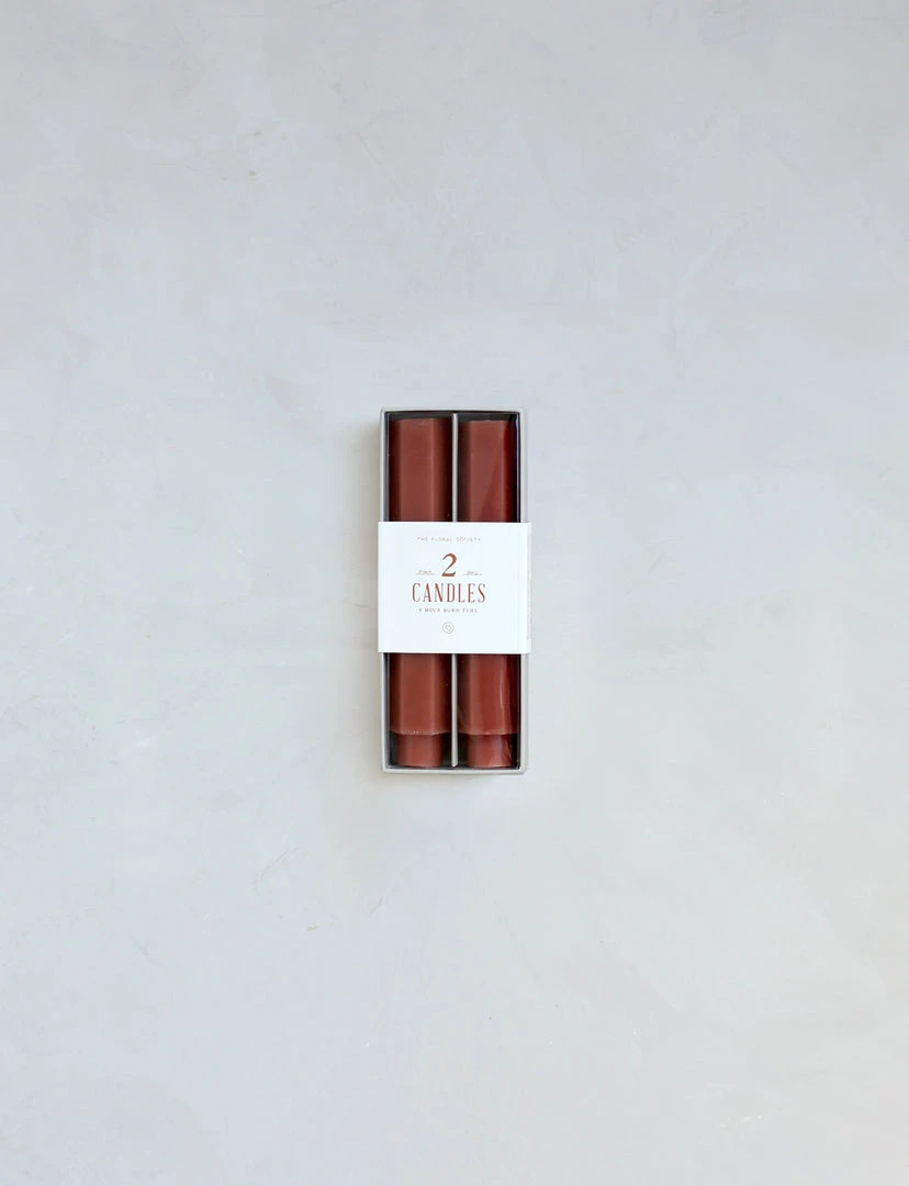 Our Fancy Taper Candles are hand-molded and embody a superior depth of color. A cotton wick is used for the cleanest burn, and the base is sized to fit a standard holder. Subtle variations in wax depth and color opacity may occur.