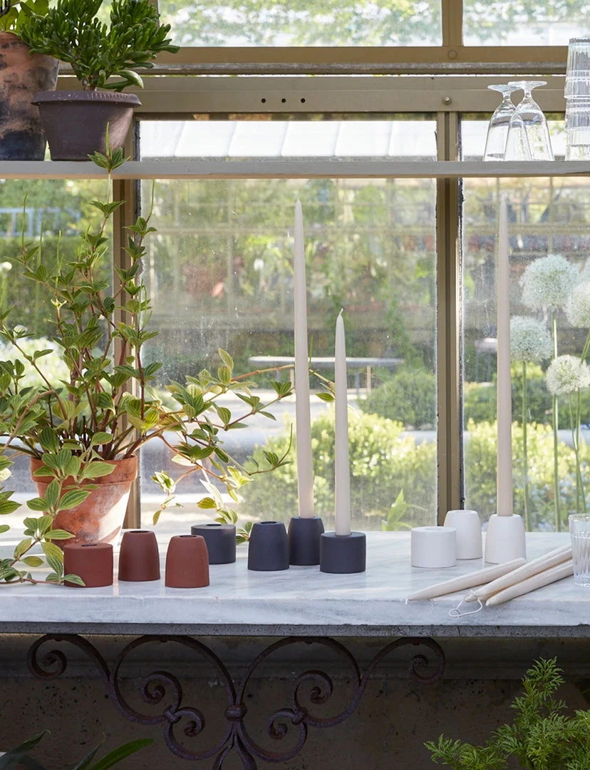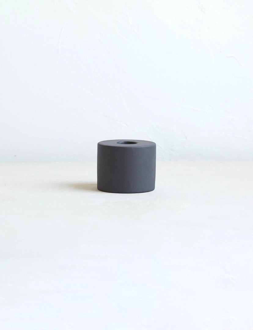 The petite ceramic taper holders complement our taper candles with their matte finish and modern form-a bold collection perfect for everyday use or entertaining. Each holder is sized to fit a standard taper candle.