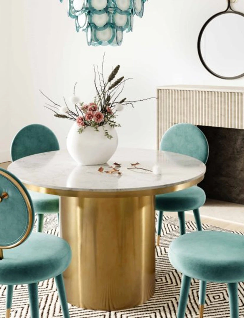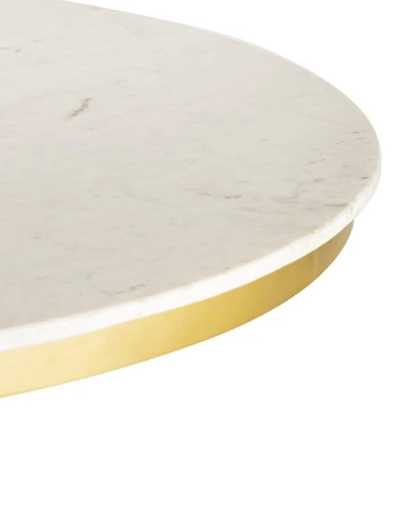 White marble and brushed gold perfectly combine to create the glam and ritzy Aaliyah table. Its tubular base adds a modern allure and its tabletop allows comfortable seating for up to four.