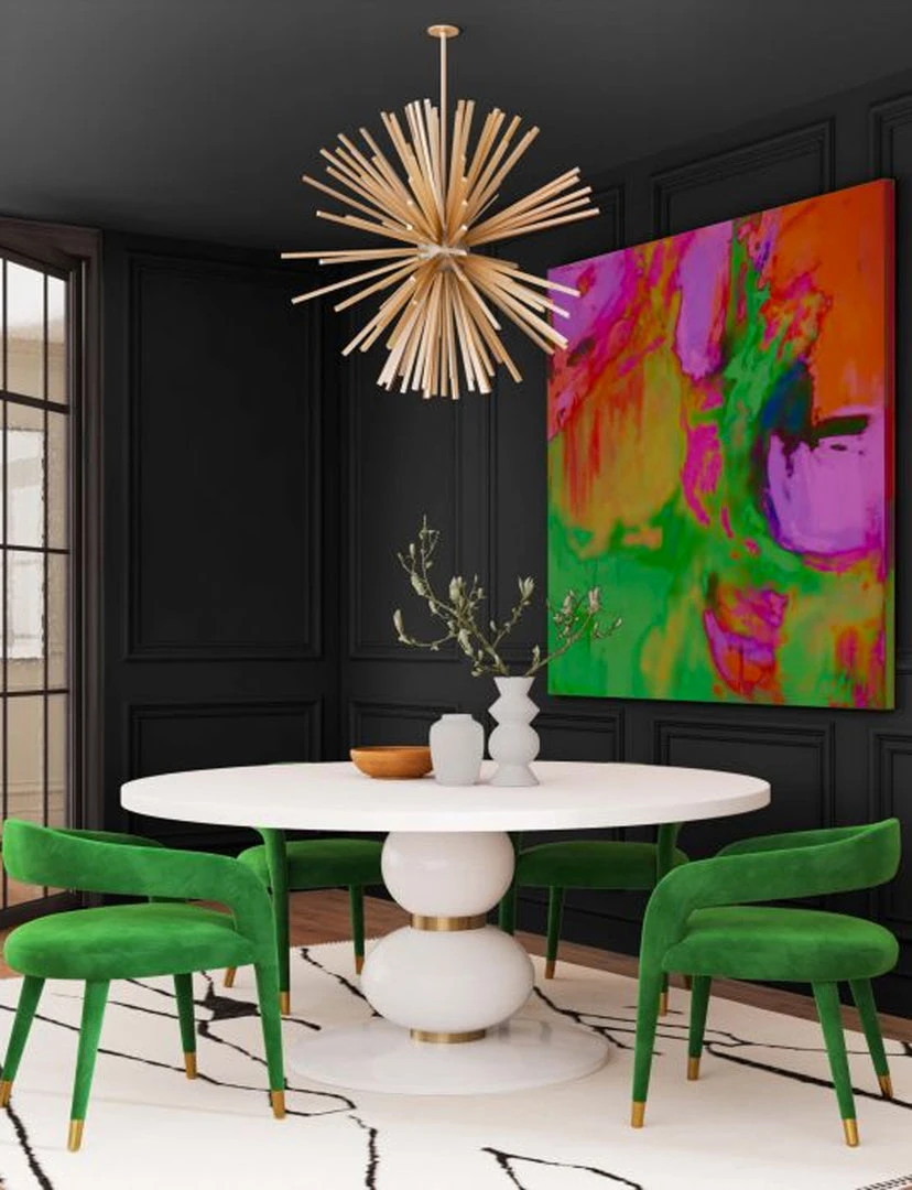 Add a sculptural touch to your dining experience with the Adrian table – a modern and urban take on the French pedestal-style table. This table’s whimsical nature is balanced by sophisticated gold band accents. This is truly a statement piece that will bring style and dynamism to any space!