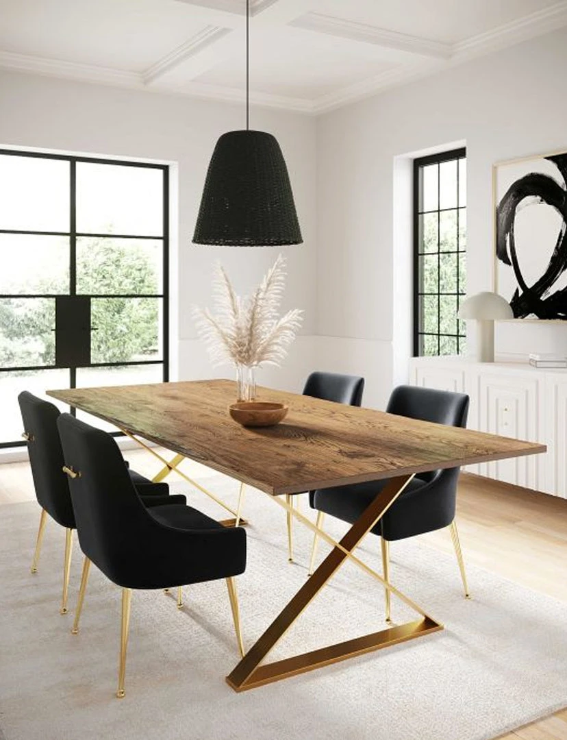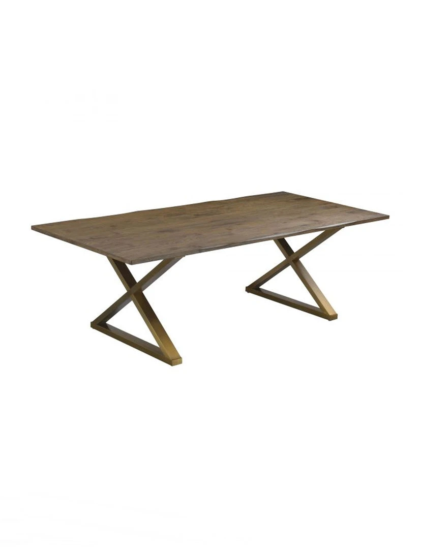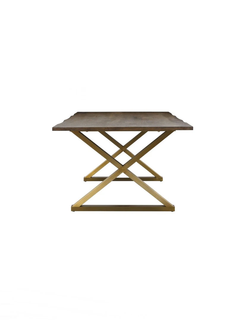 Industrial design infused with Hollywood glam gives birth to the Aime table. The rustic Ash wooden top is just the right finish and the brushed gold steel base provides the unique design that you are sure to love. Natural variations in the wood are to be expected, and no two tables are exactly alike.
