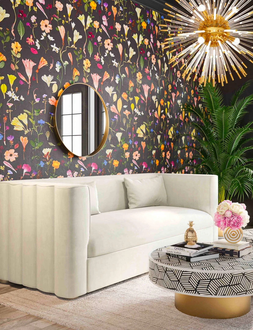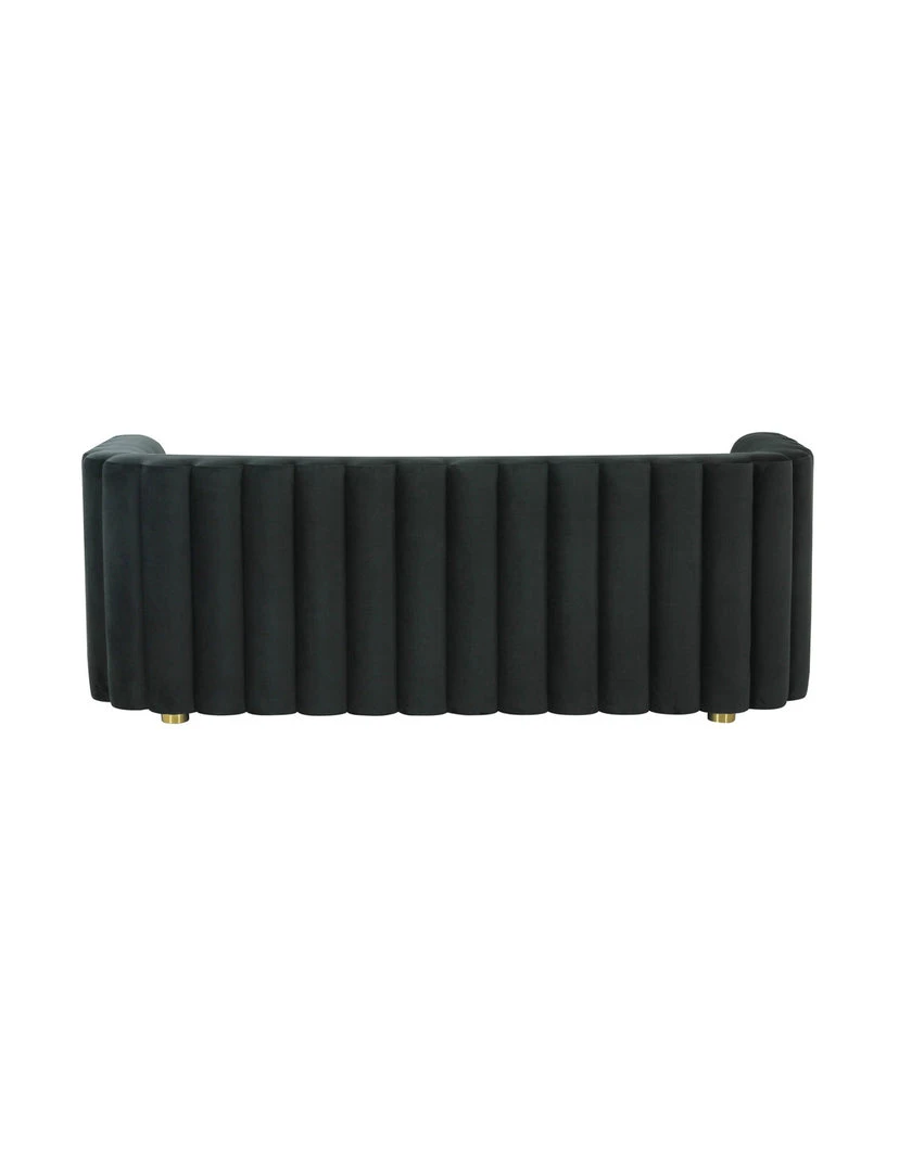 Description: Graceful and eye-catching, the Cali Sofa is the epitome of modern glamour. Its curved silhouette, scalloped tufted back and beautiful stainless steel legs, add character and style to any room. Available in multiple color options.