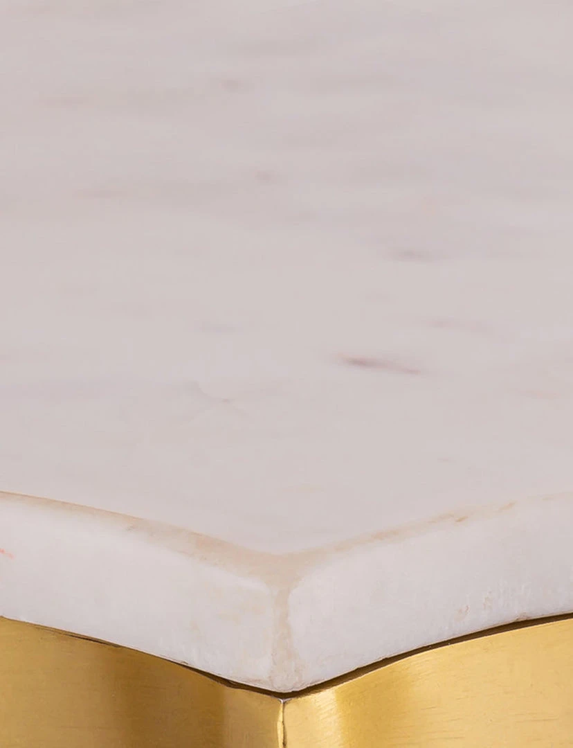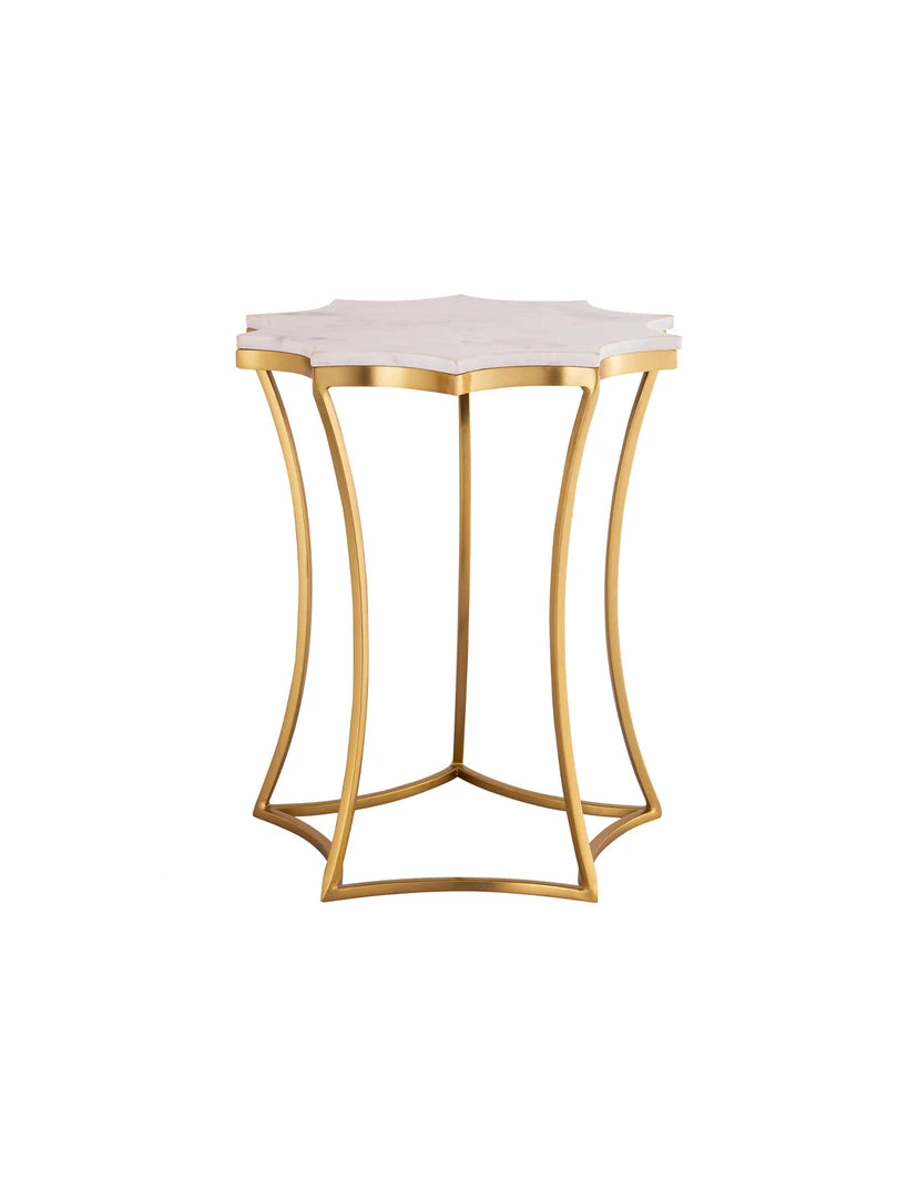 The Carmelia side table is both elegant and an instant classic. Its sun-shaped marble top rests on an open-frame golden base crafted from durable iron. Shop the Inspire Me! Home Collection to complete the look and take the work out of designing your space.