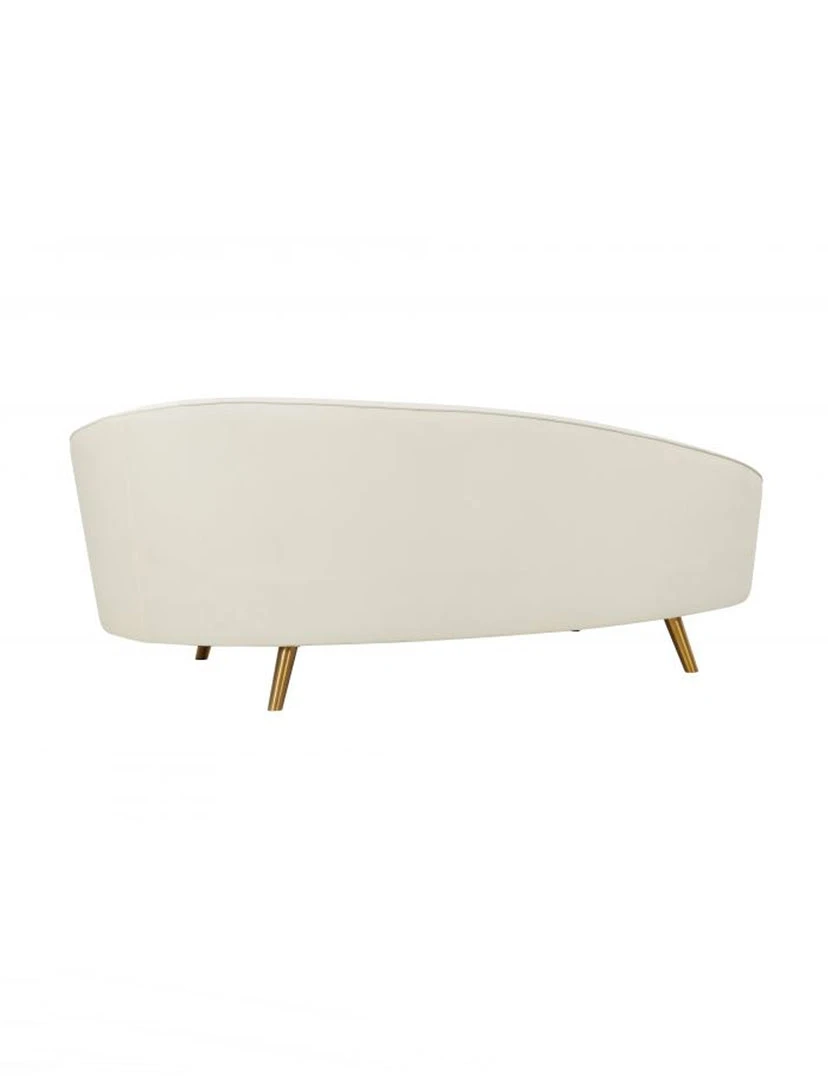 With its sloped edges and striking color, the Christopher sofa adds a burst of fresh style to your home. Its plush velvet upholstery, piped stitching and glamorous gold legs come together in perfect harmony to create this showstopper. Available in various deluxe color options.