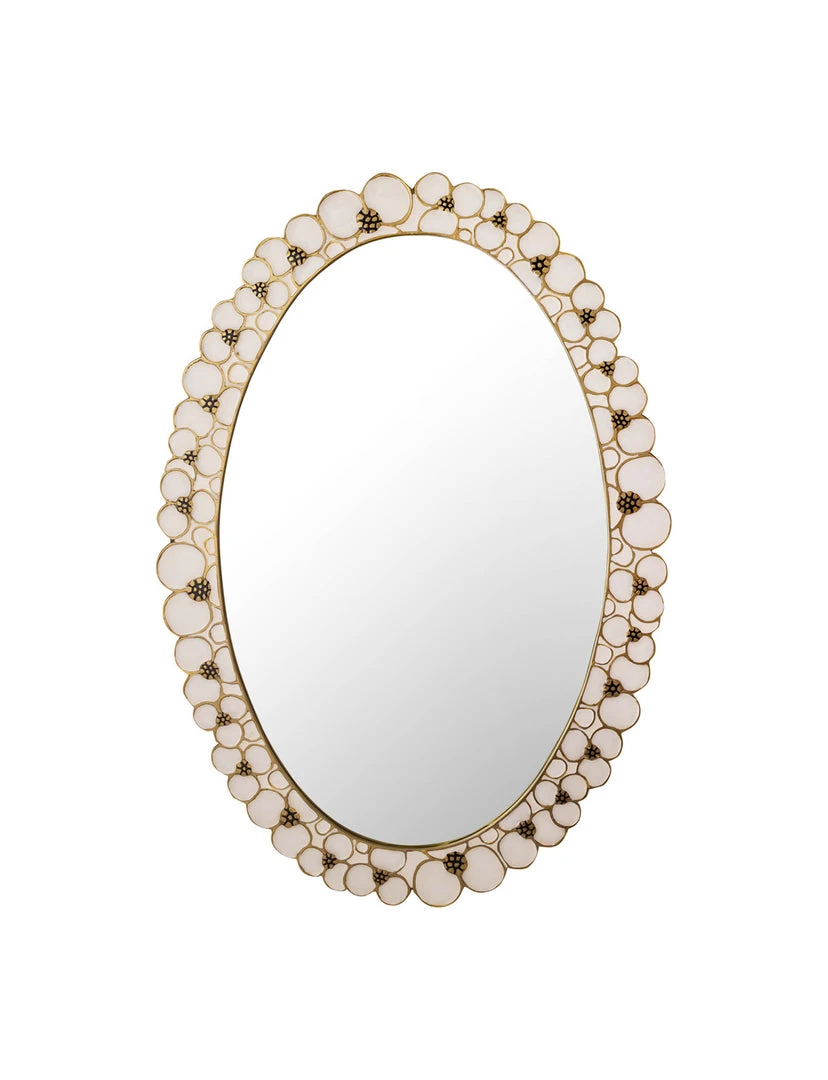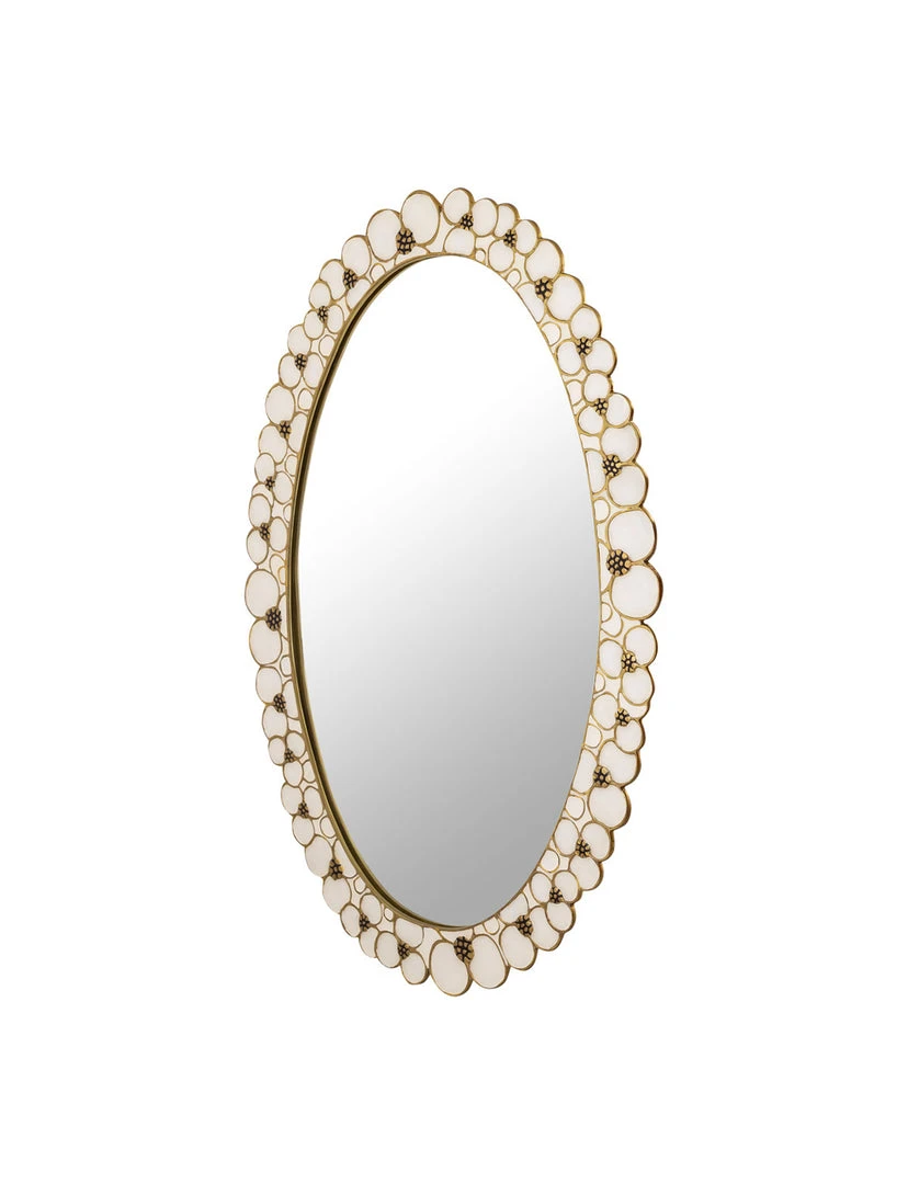 Description: Floral inspiration and masterful handcraftsmanship combine beautifully to create the Flor mirror. Its oval shape and intricately detailed frame will be the focal point of your wall and add a burst of personality to your space.