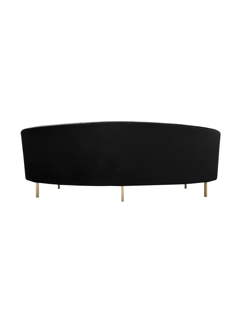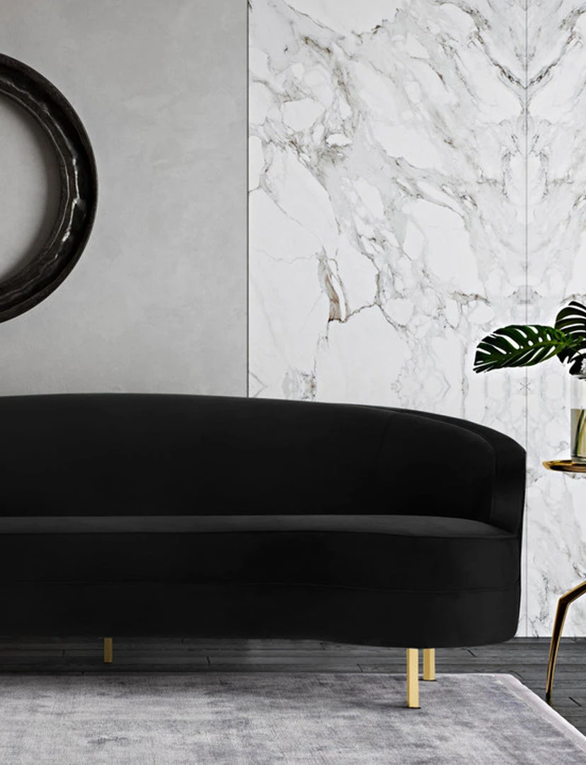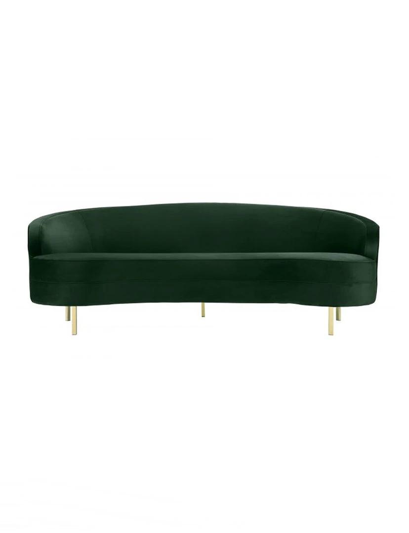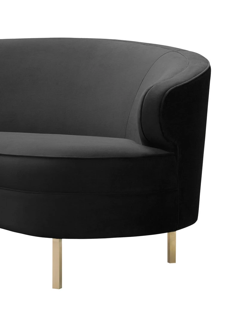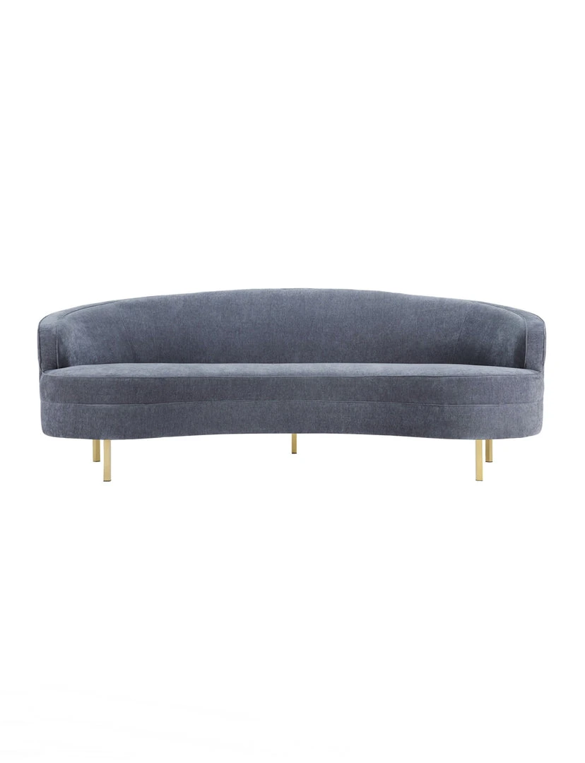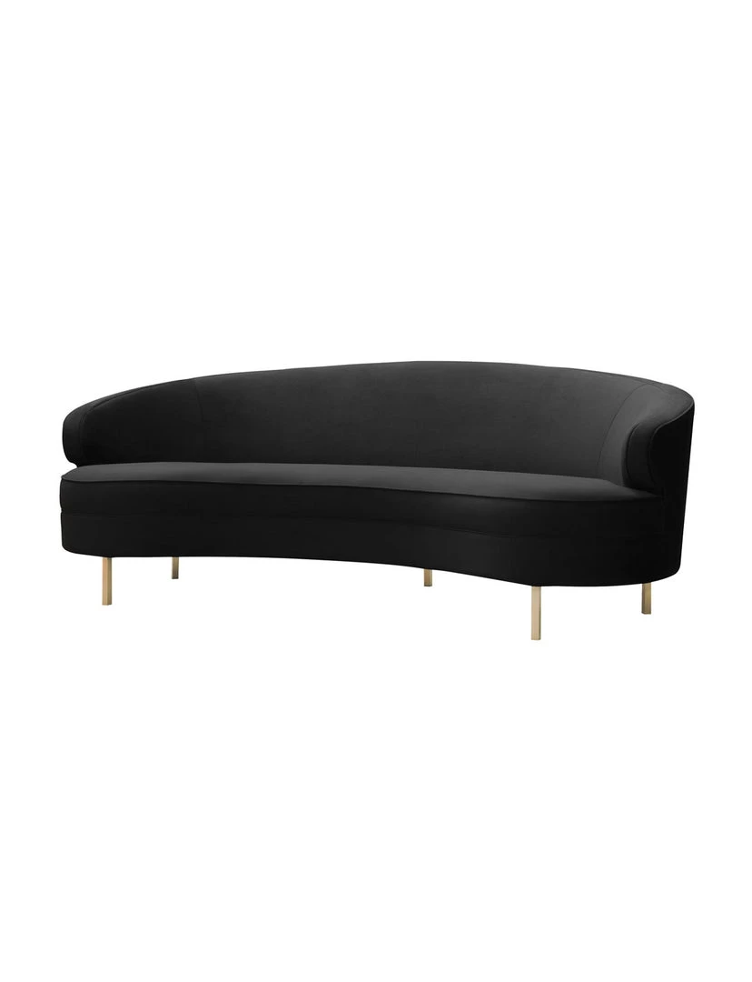 Description: With its elegantly curved silhouette and luxurious velvet upholstery, the Bala Sofa is beautiful from all angles. We love the gleaming gold stainless steel legs and the neutral hue which makes it fresh and chic.