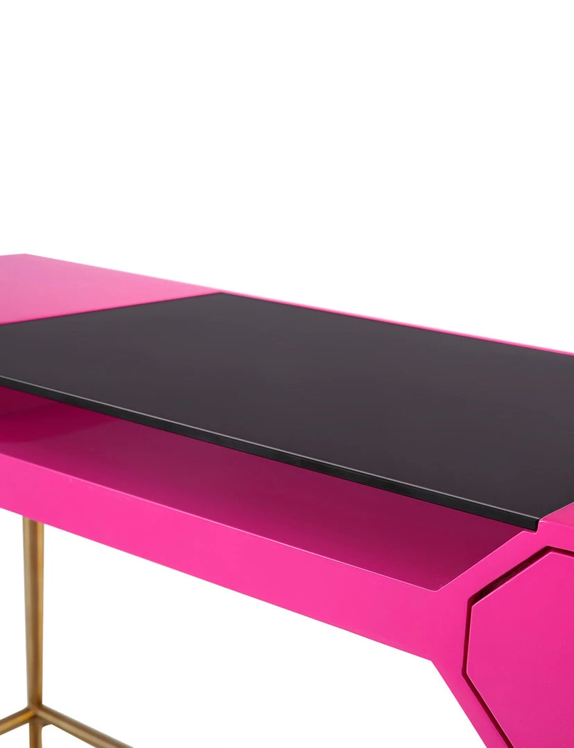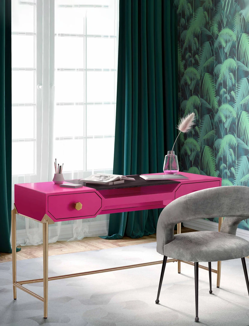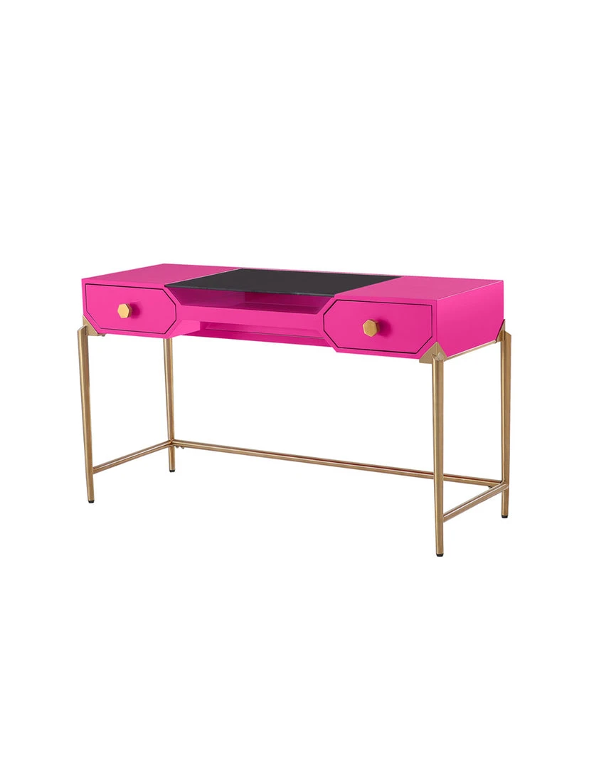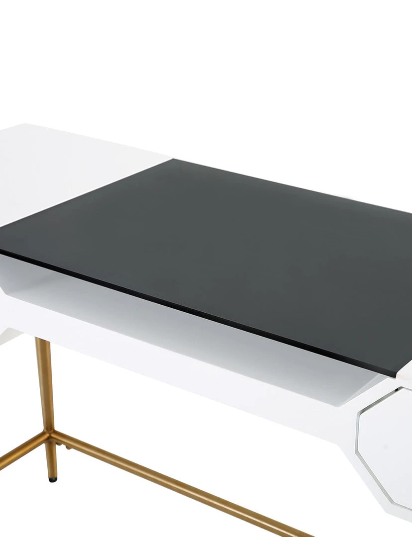 Add a burst of fresh style to your workspace with the Bao desk. Featuring a lacquer finish, glass top, gold hardware and ample storage space, it’s available in two colors to suit your fashionable taste.