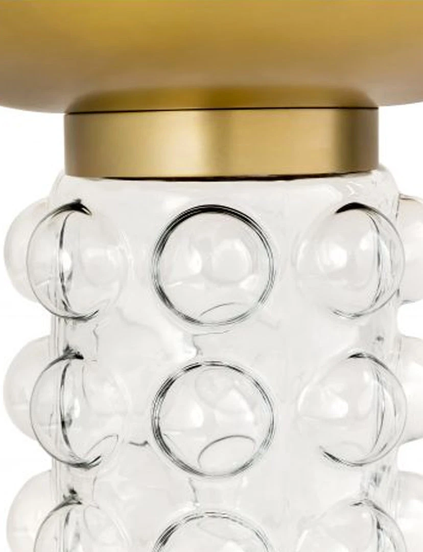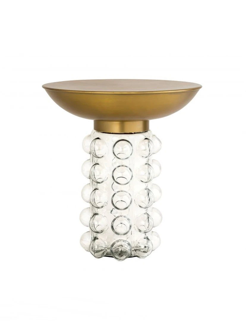 A playful and stylish combination of design and materials, the Brie side table features a brass top supported by a transparent glass base. Use individually or in pairs to complement and enhance your living space.