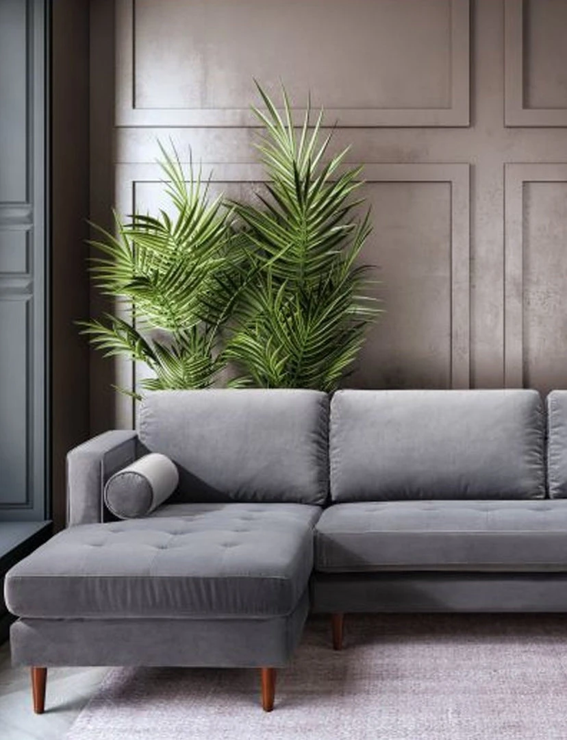 The beautiful mid-century designed Cami sectional offers relaxation and style. Featuring removable cushions upholstered in sumptuous velvet, this handsome sectional is available in multiple color options and either RAF or LAF configuration.