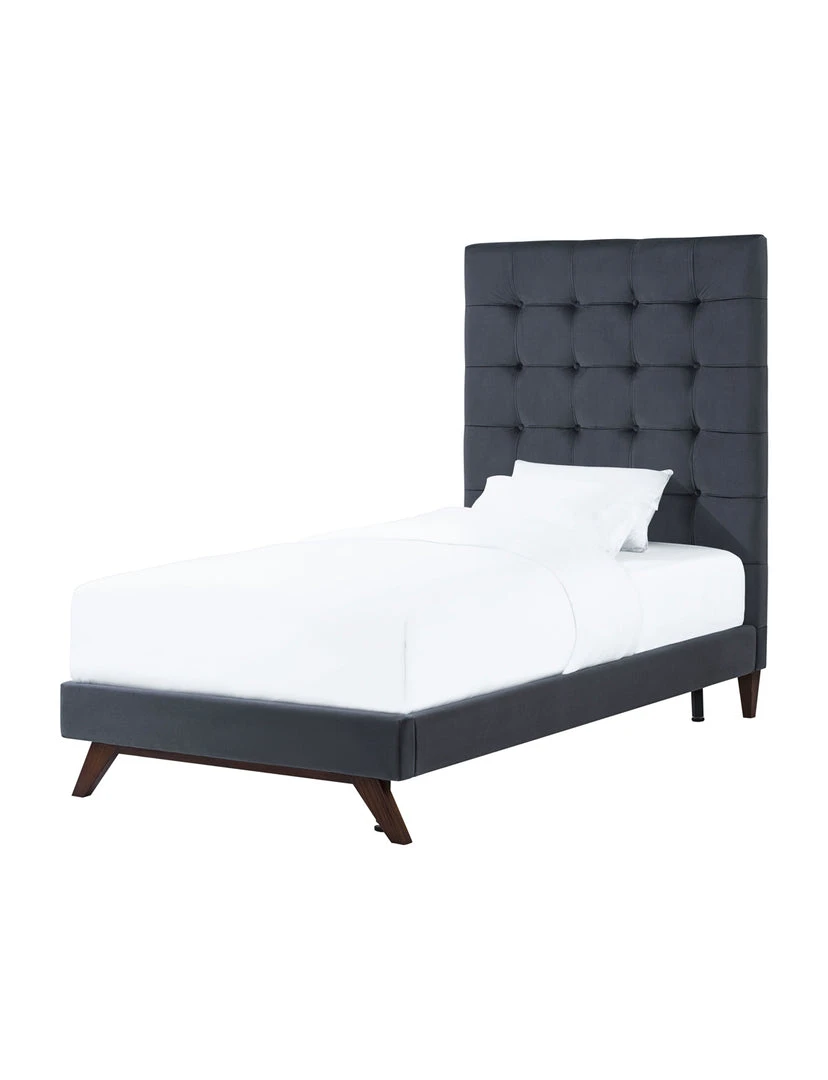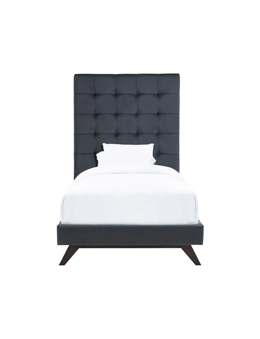 Description: Drawing inspiration from vintage-classic design, we introduce the Ethan Bed. Carefully-aligned button tufting and rich velvet color options bring sophistication and charismatic personality to the bedroom. Retro styled legs flaunt an interesting twist to this otherwise classic piece.