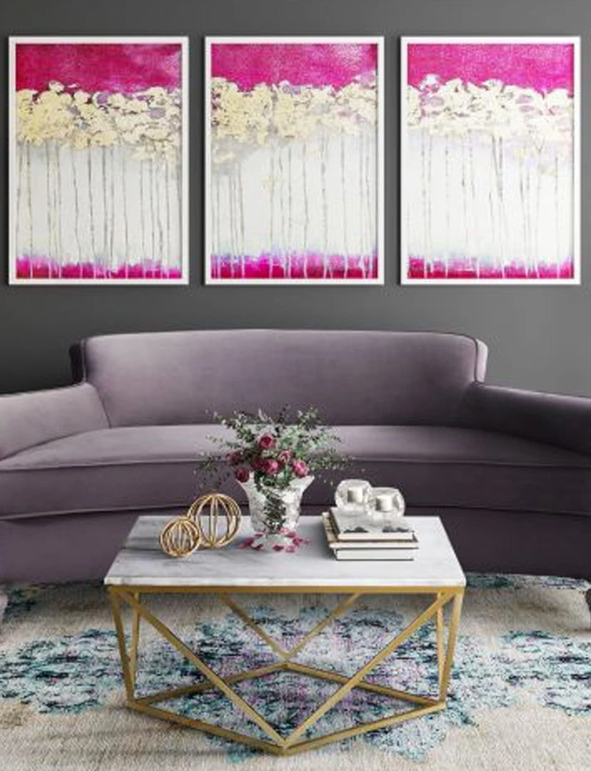 Modern with an organic twist, this eye-catching design shows off an elevated white marble top elegantly anchored to a gleaming gold steel base. Brimming with luxury and refinement this cocktail table is sure to be a standout piece.