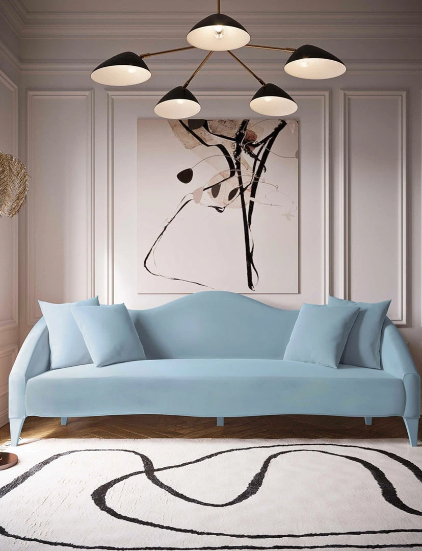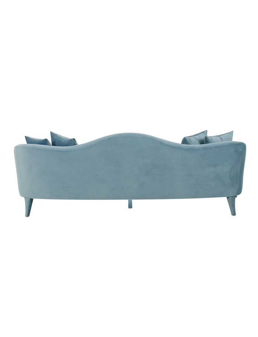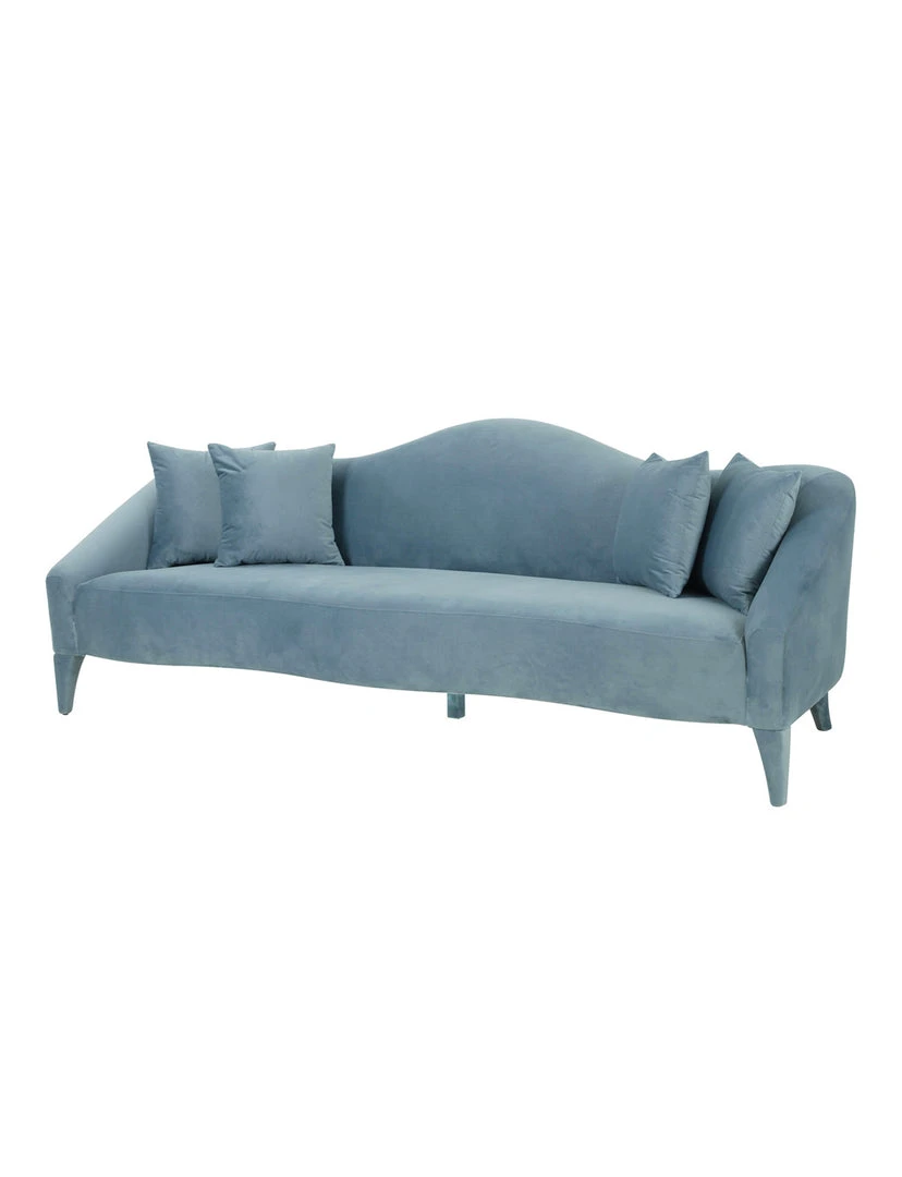 Description: The chic Noma Sofa is an elegant piece that brings color and personality into the room. Upholstered in velvet and adorned with plush throw pillows, this sofa is a comfortable yet stylish household favorite. Available in several color options to suit your style.