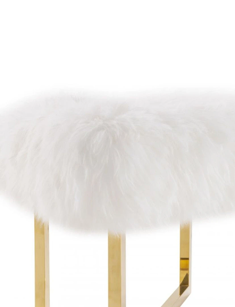Description: Made with genuine sheepskin, the Nomo bench from TOV Furniture is the perfect chic accessory that is versatile for a verity of uses and spaces. The fabulously fluffy top is perched upon a shapely gold stainless steel base. We love how this small-scale piece makes such a large-scale statement in any room.
