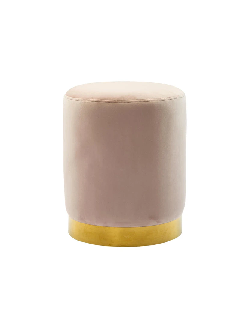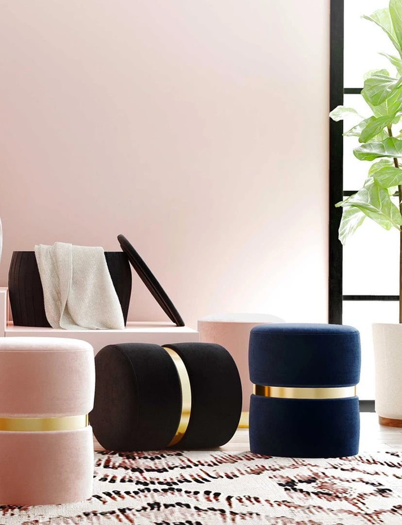 Description: Plush velvet upholstery and a brushed gold finish combine to create one perfectly stylish piece. Whether used individually or in bunches, the Preony ottoman brings a pop of life to any room.