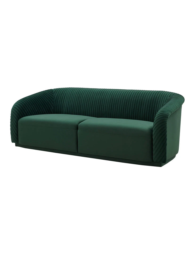 Description: A perfect fusion of fashion and comfort, the Yeri sofa is upholstered in plush velvet and features a pleated textured finish and rolled arms. Available in multiple color options, this sofa was designed so you can relax in style.